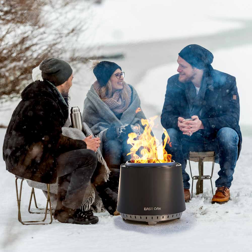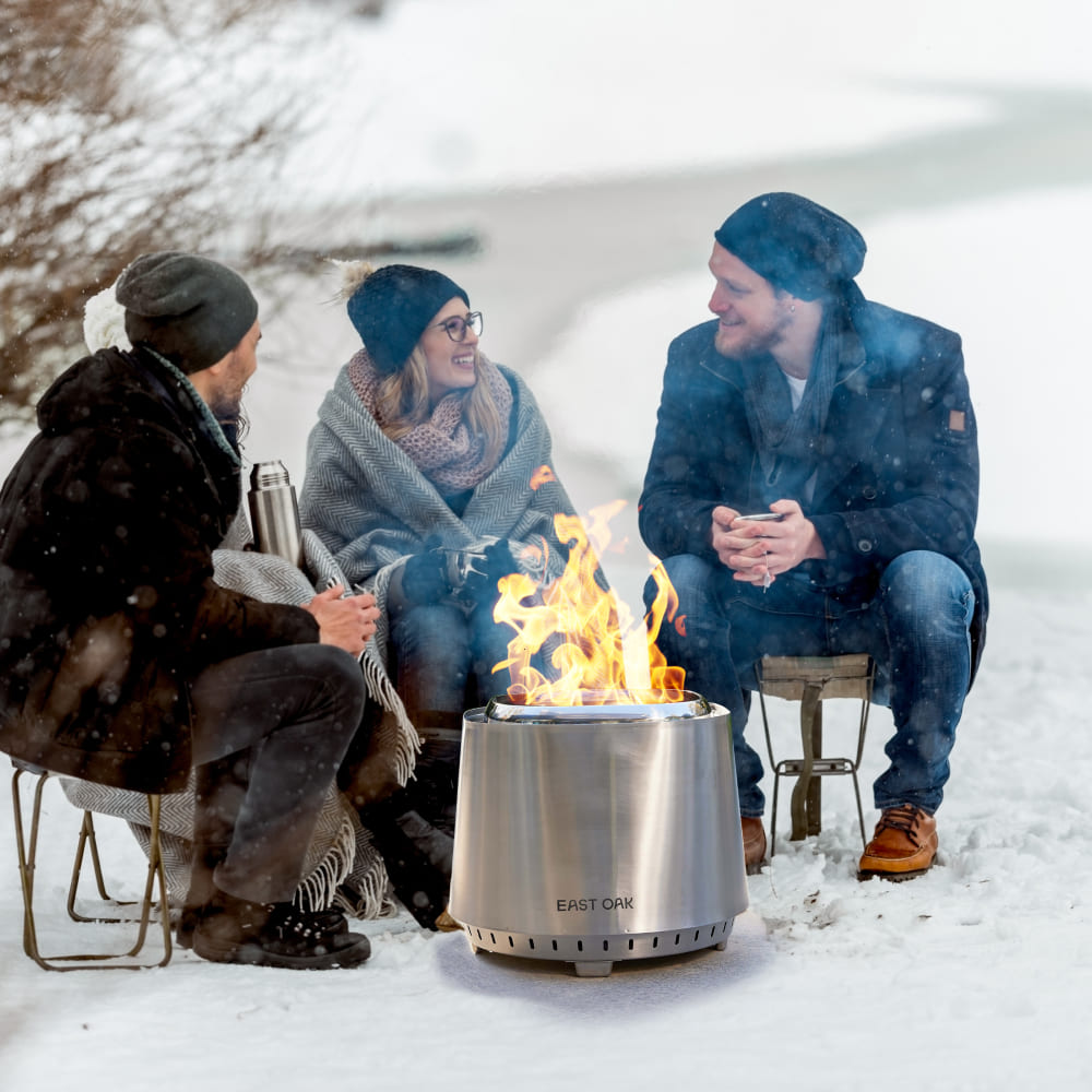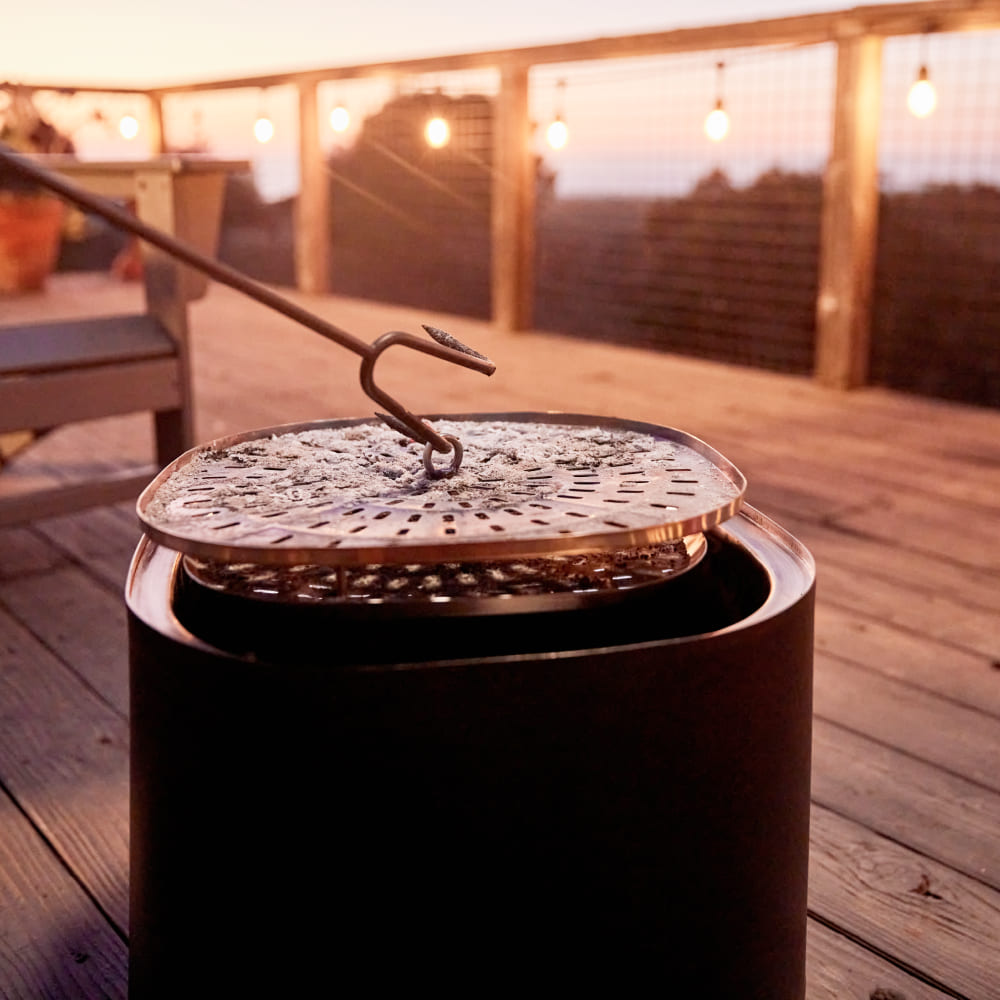 Die erhitzte Luft entweicht durch die Lüftungsschlitze am Rand, vermischt sich mit dem Rauch und entzündet sich, wodurch eine Sekundärverbrennung entsteht. Dieser Prozess reduziert die Rauchentwicklung und sorgt für ein saubereres, angenehmeres Feuer.