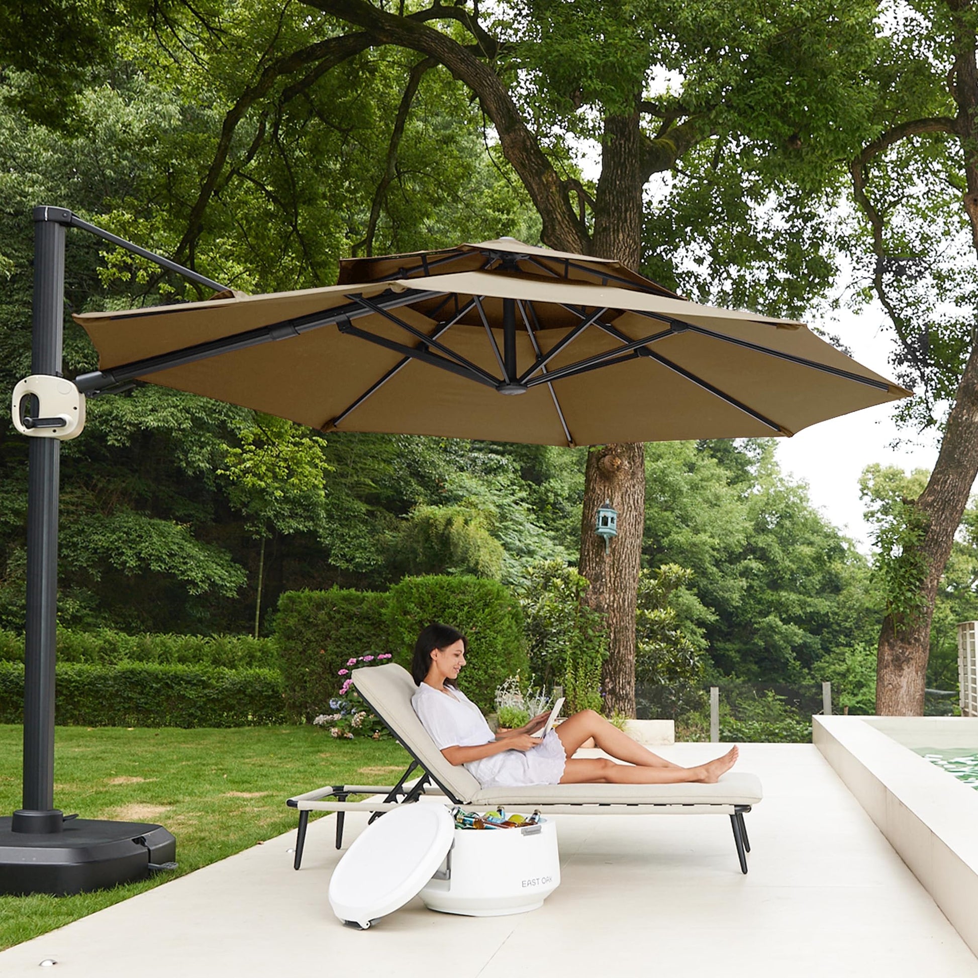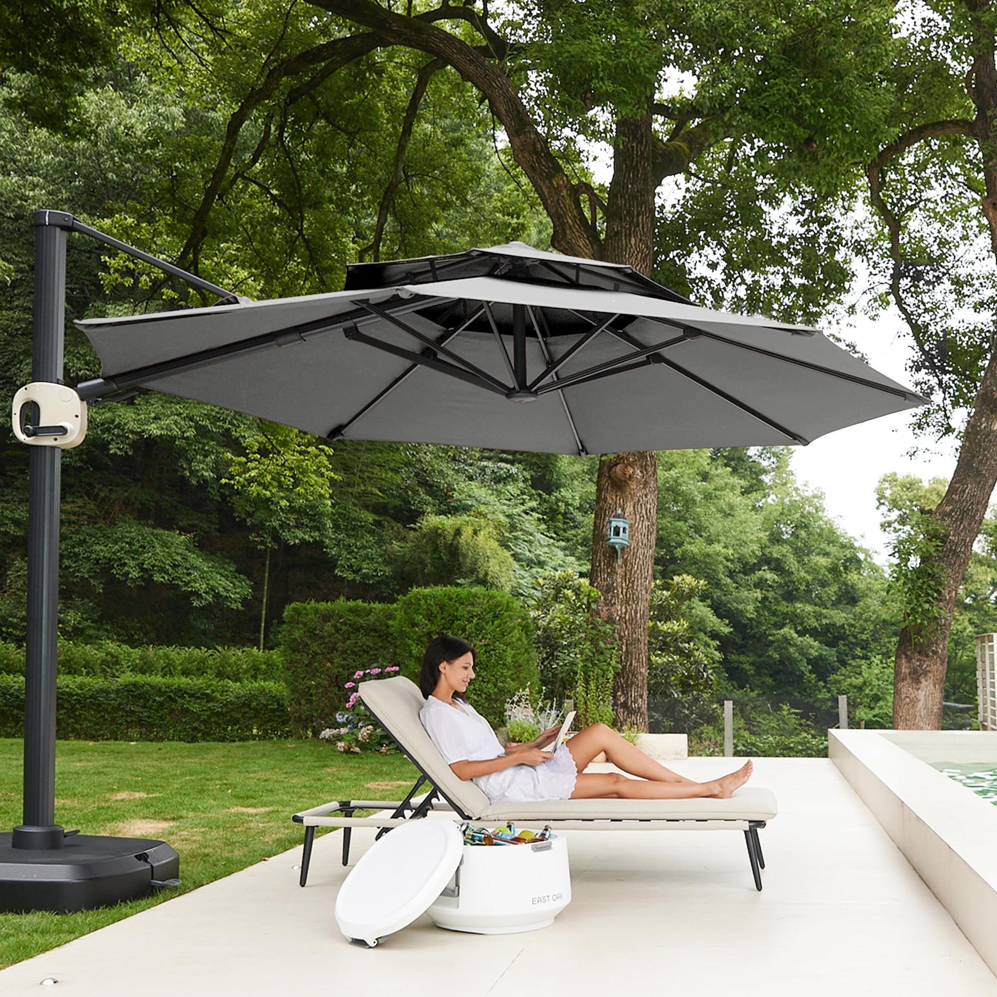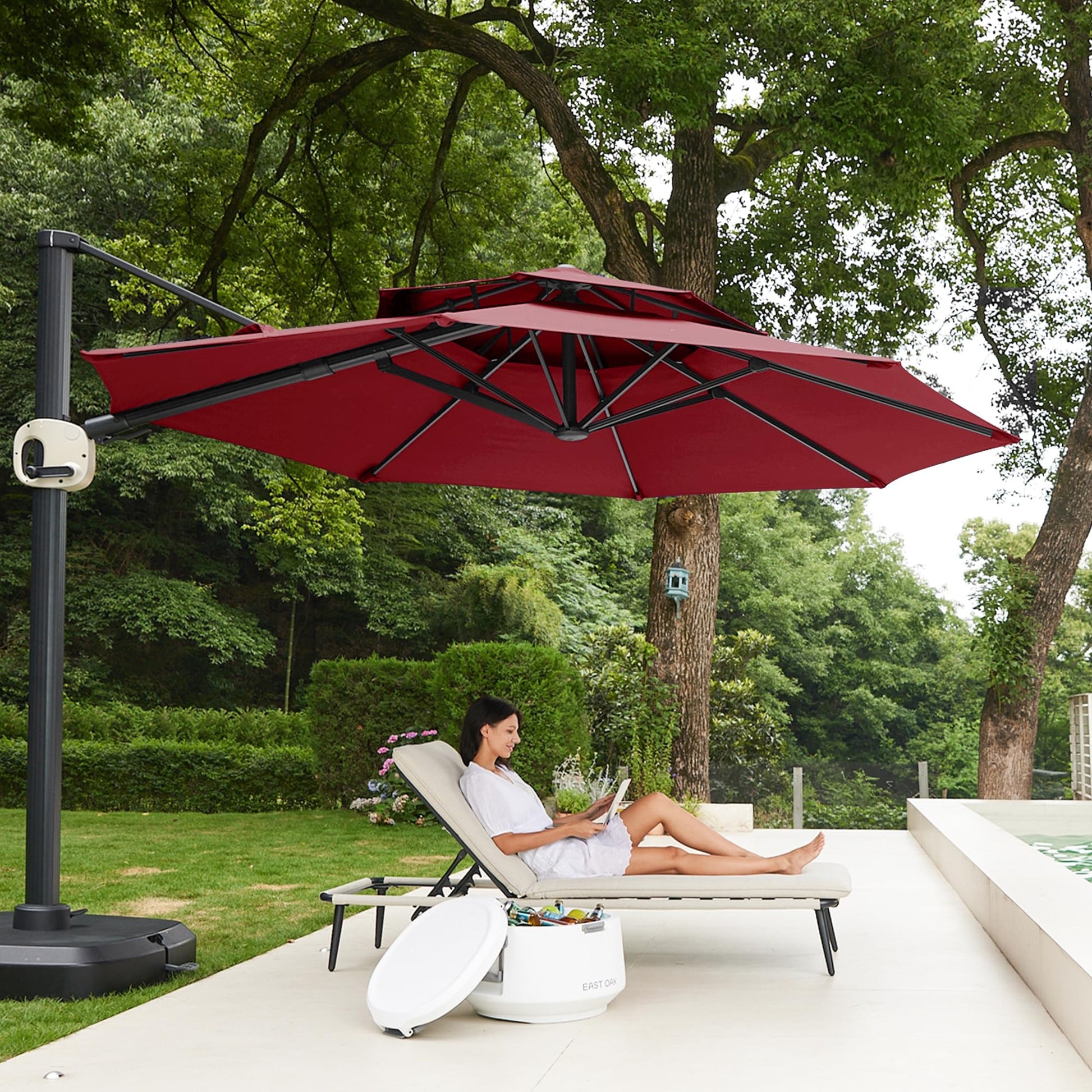 11 Ft Double Roof Round Offset Cantilever Patio Umbrella