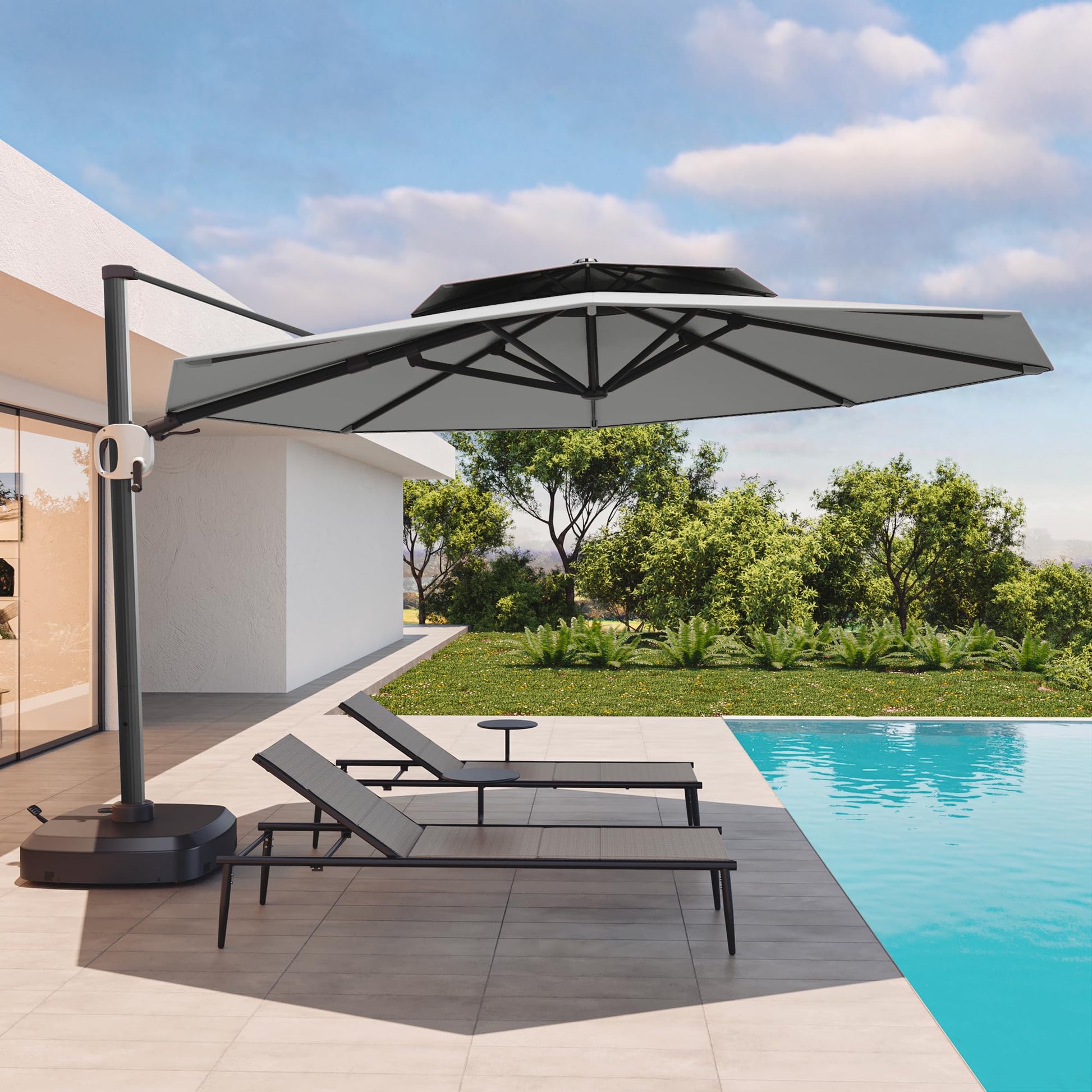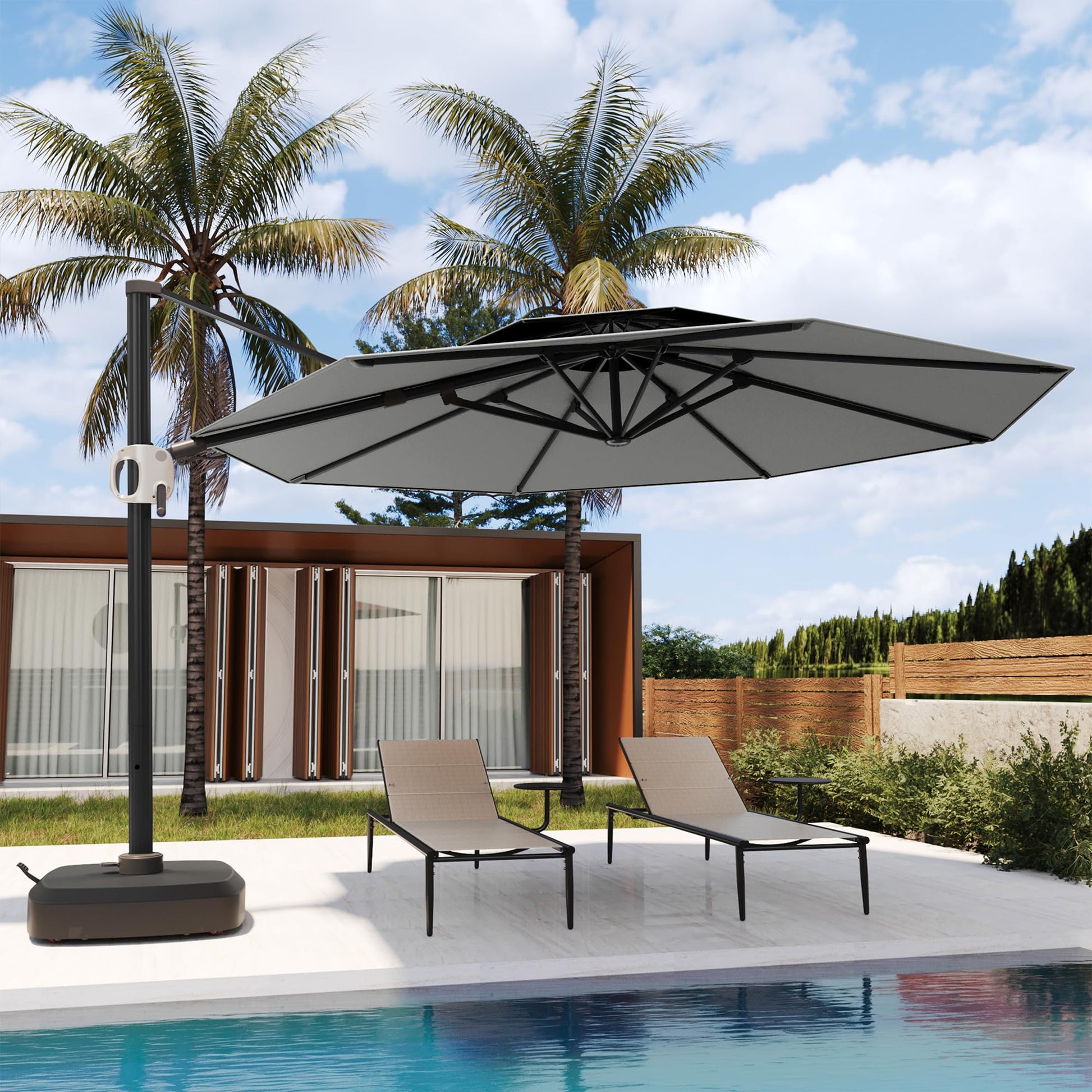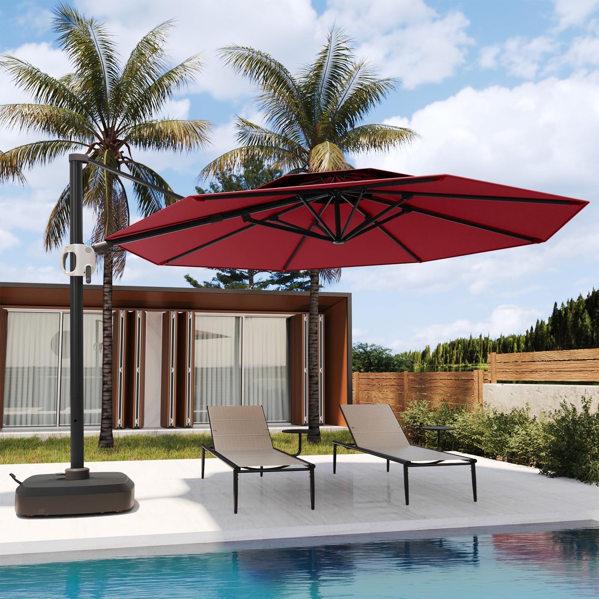 11 Ft Double Roof Round Offset Cantilever Patio Umbrella