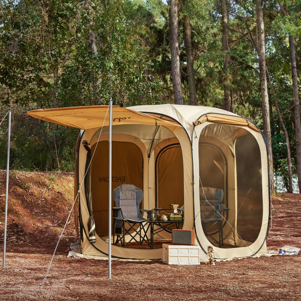 Stay shielded with East Oak 12ft pop-up screen house for 8-10 adults. UV and mosquito-proof, easy to set up and store—perfect for backyard, camping, and patio.