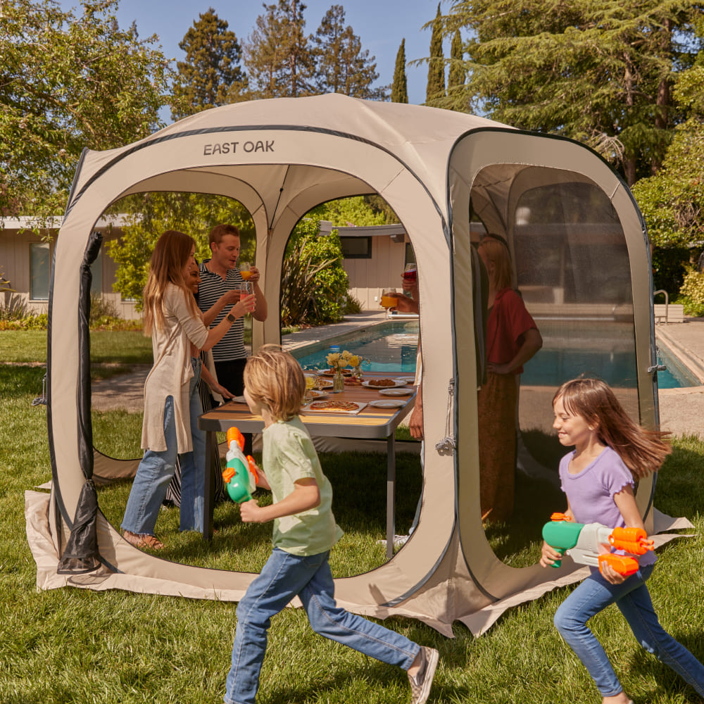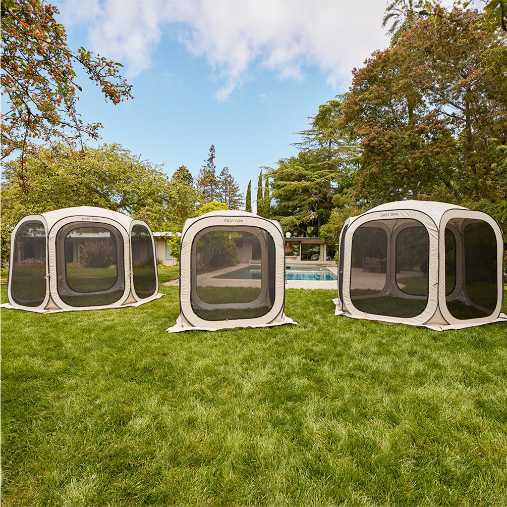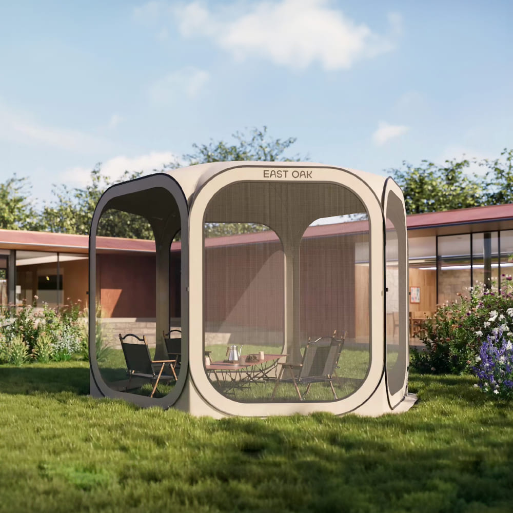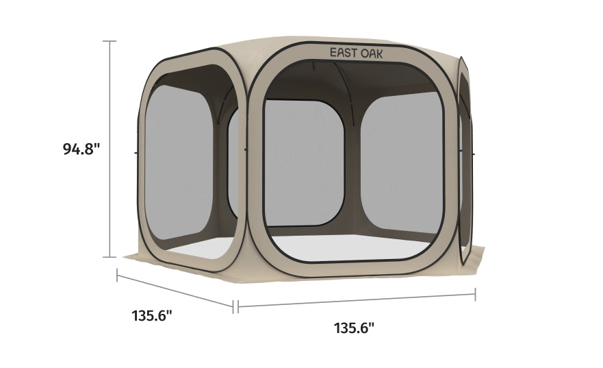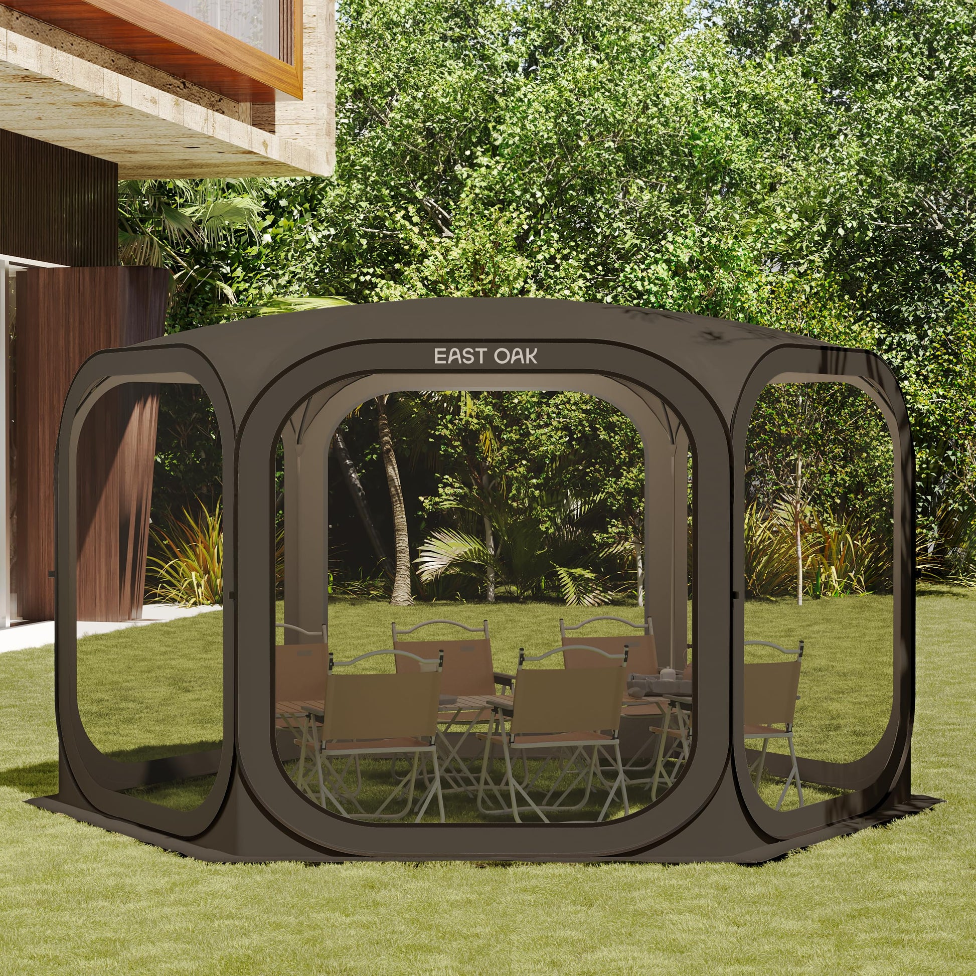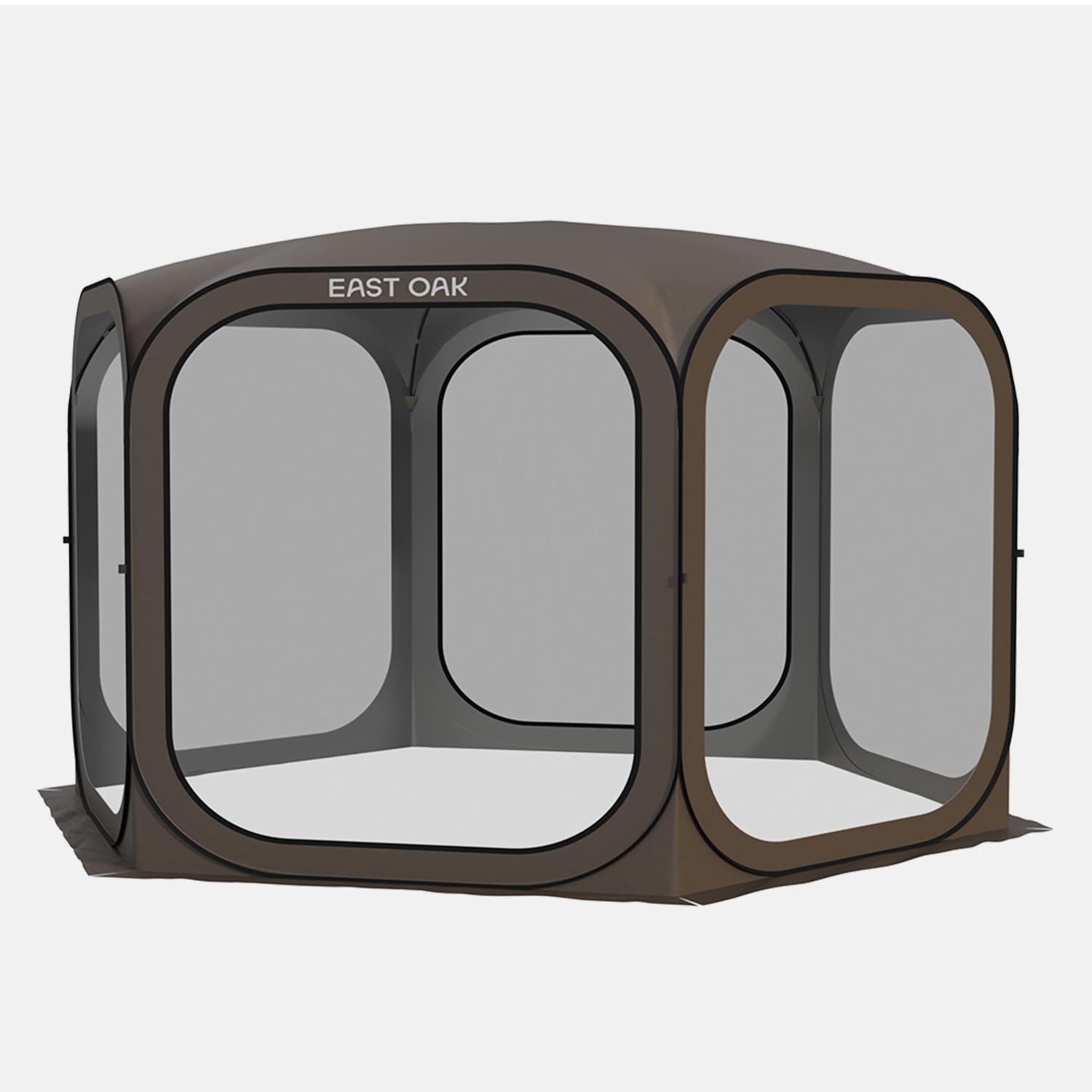 Stay shielded with East Oak 12ft pop-up screen house for 8-10 adults. UV and mosquito-proof, easy to set up and store—perfect for backyard, camping, and patio.