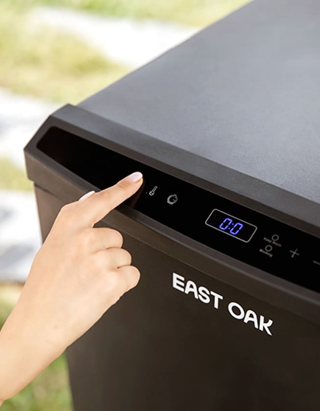 The East Oak Smoker brings the ease of use needed to create restaurant-quality smoked flavors right at home. With intuitive controls, precise temperature monitoring, and steady heat management, it takes the guesswork out of smoking.