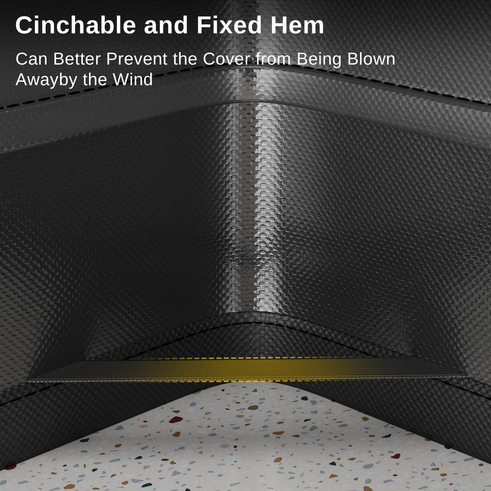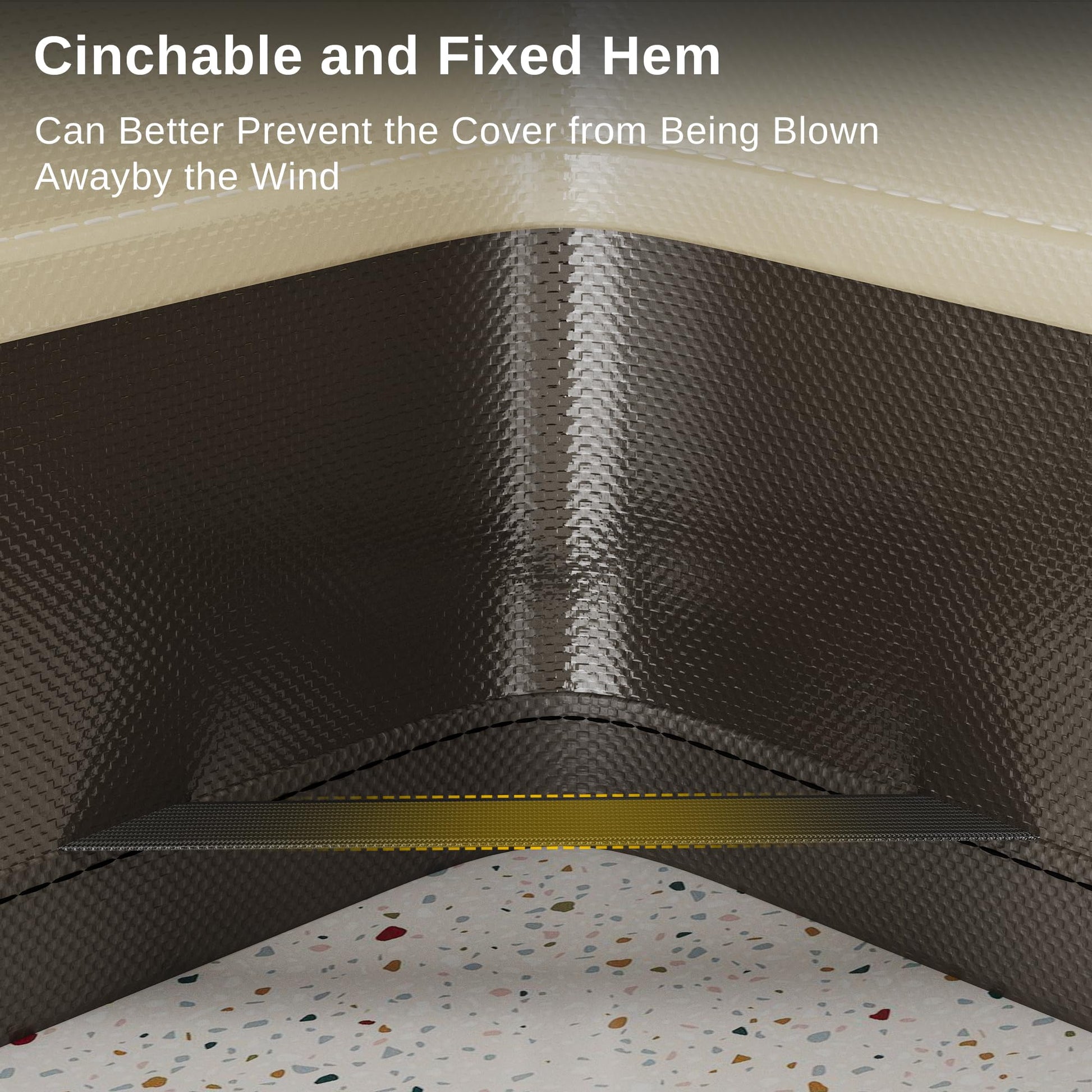 The cover's bottom features an elastic, adjustable drawstring, ensuring a perfect fit for your fire table, even in harsh weather. This feature provides all-around protection for your 28-inch fire table, offering a customized and snug fit.