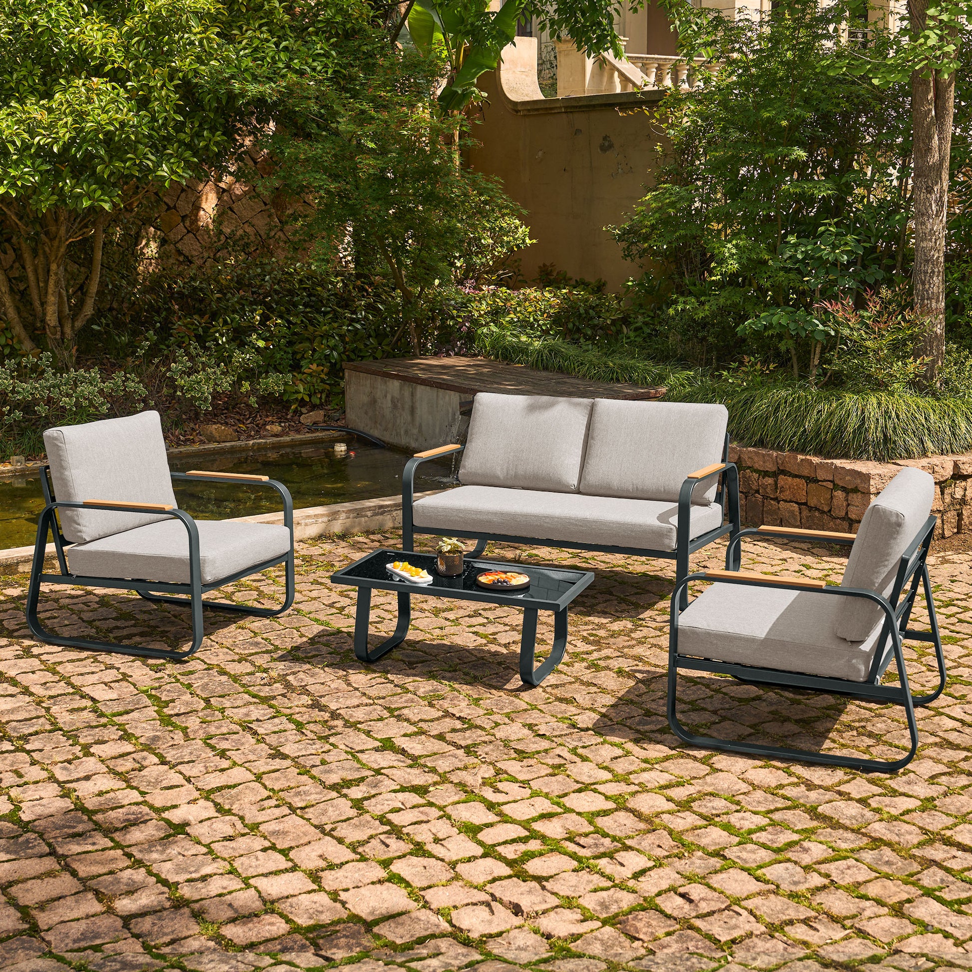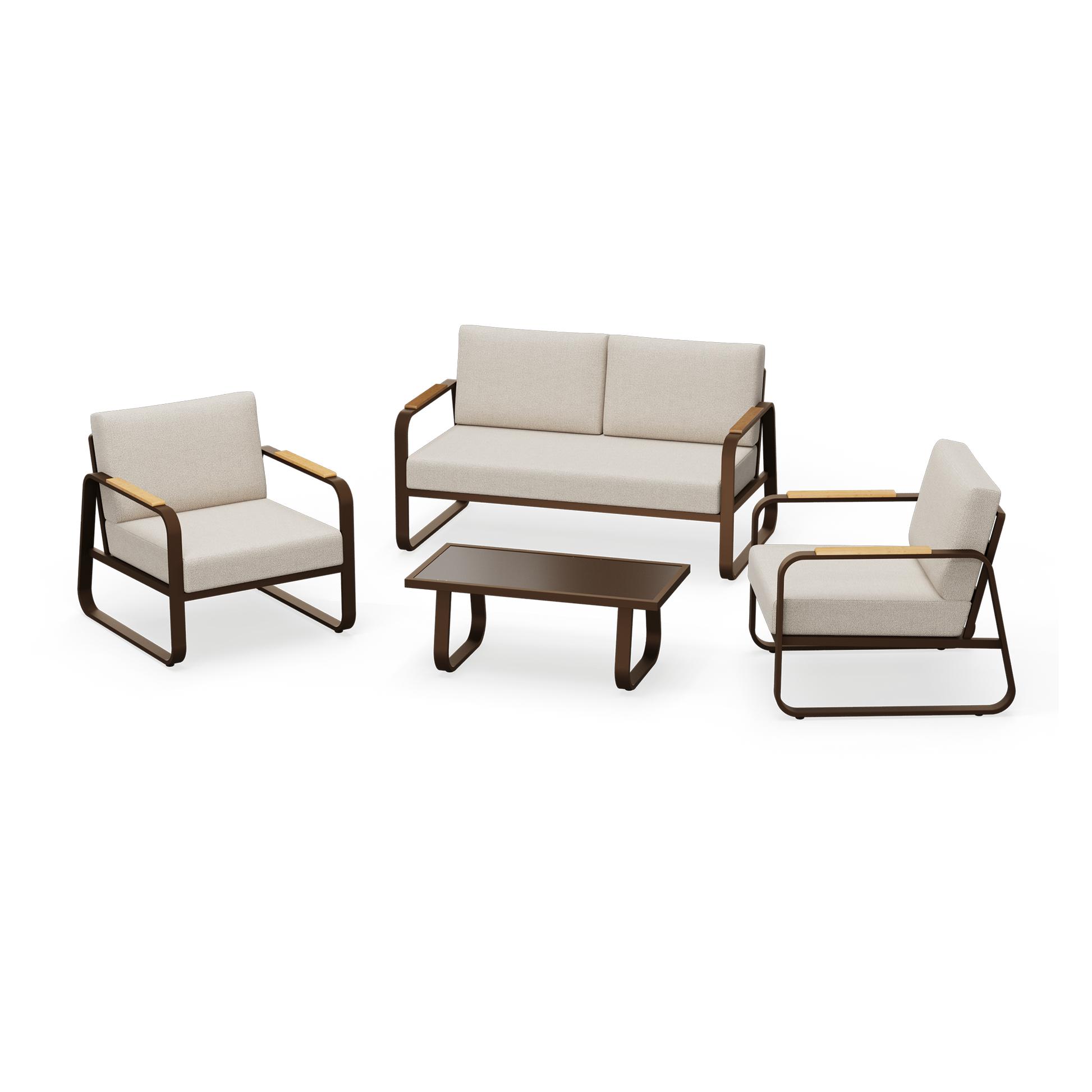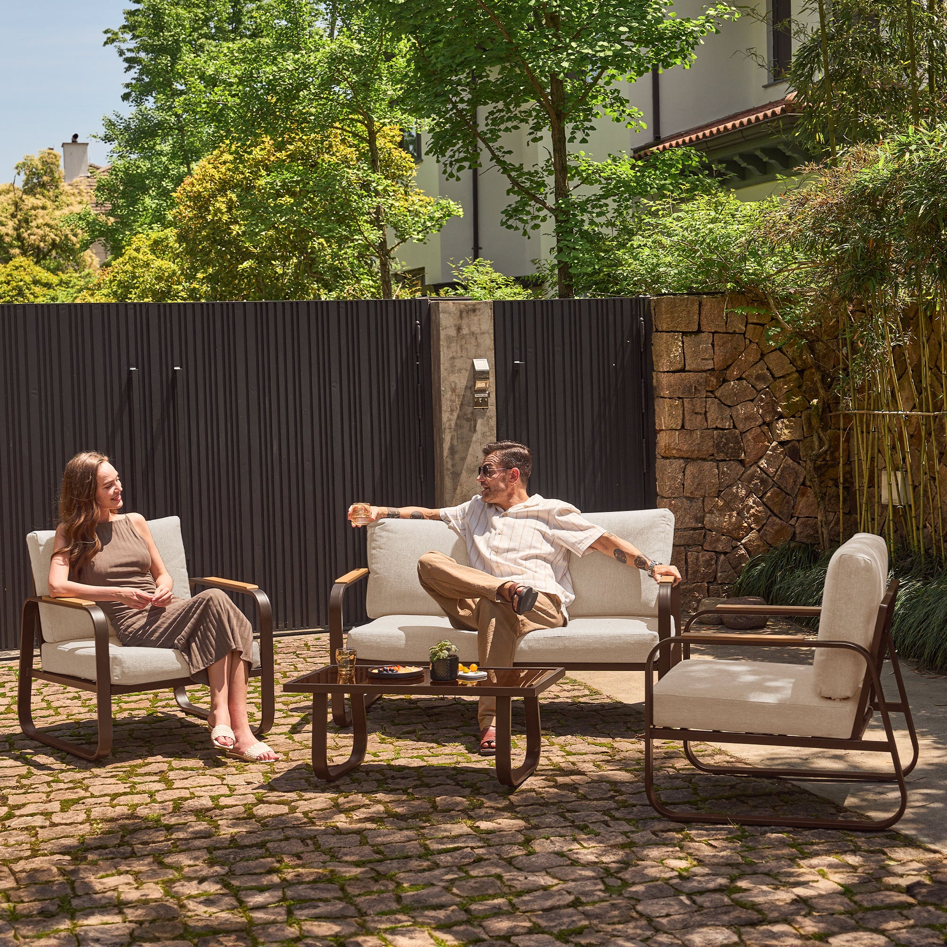 The Alexander 4-Piece Outdoor Loveseat Set offers a spacious, luxurious way to elevate your outdoor living space.