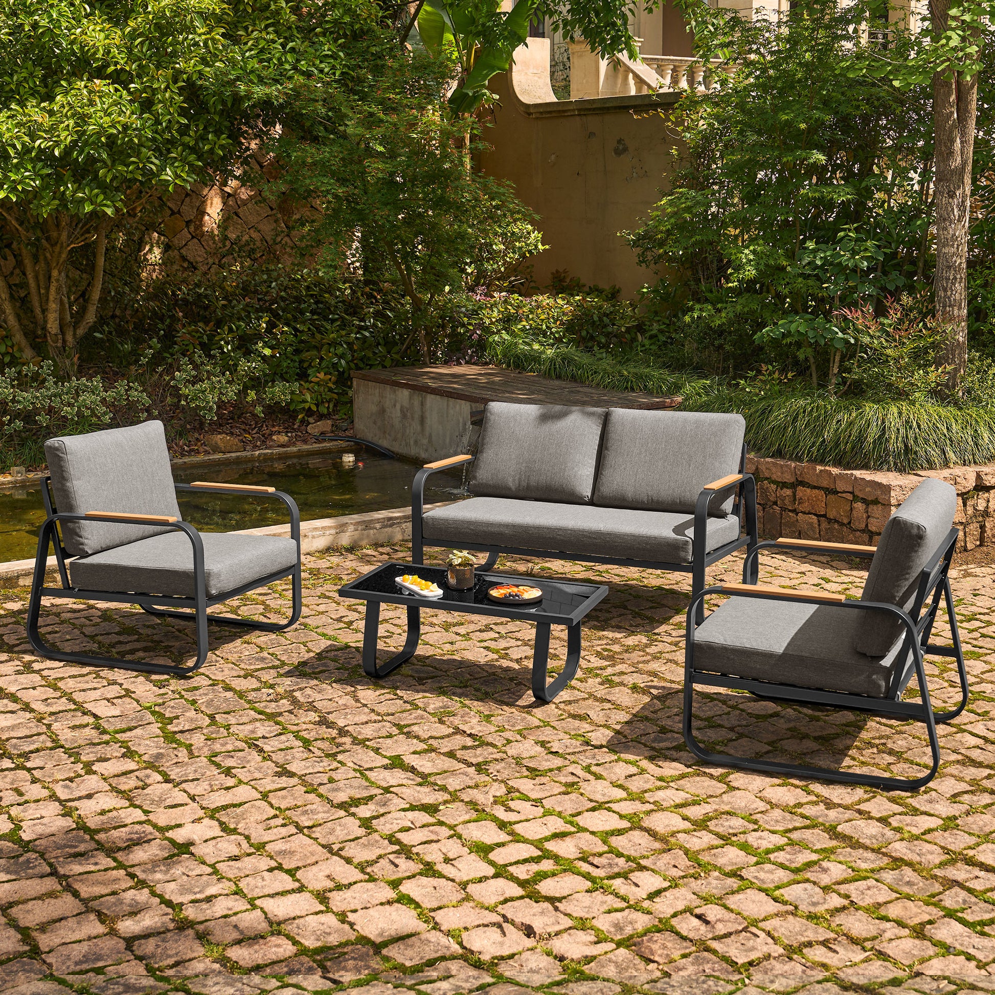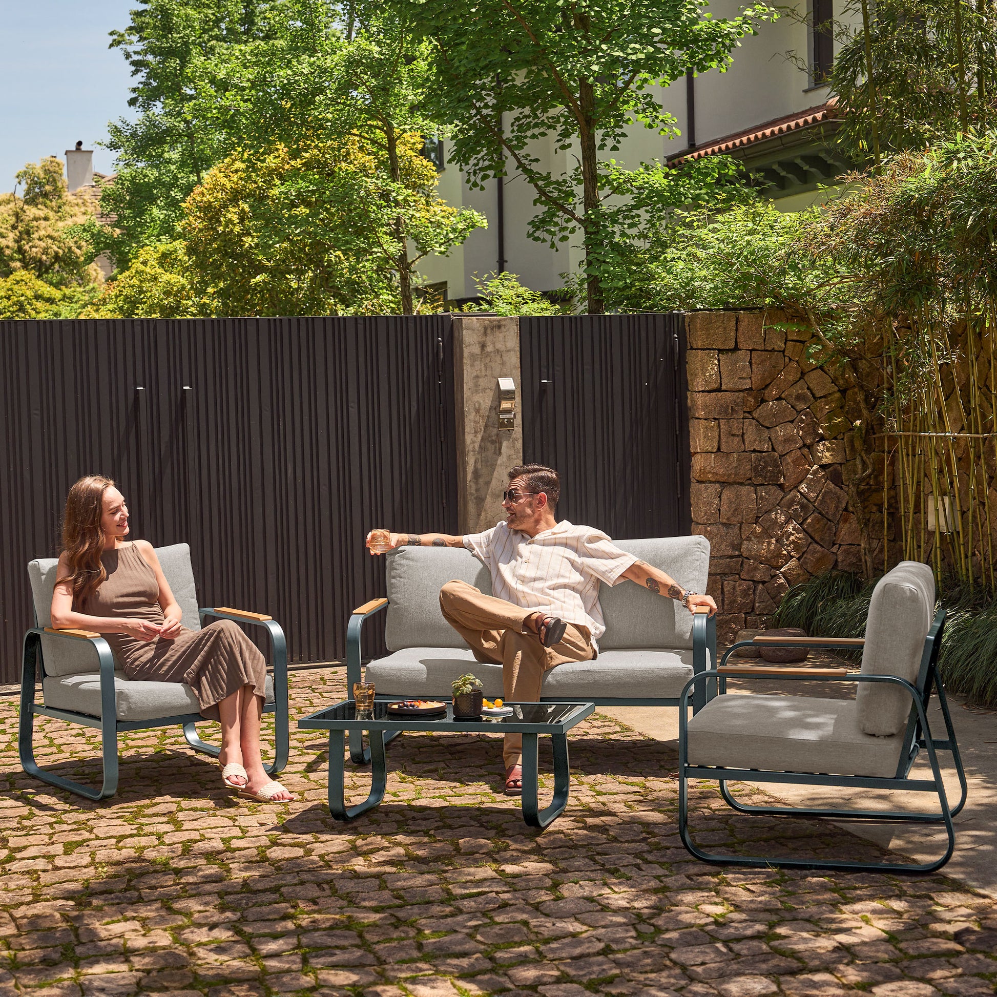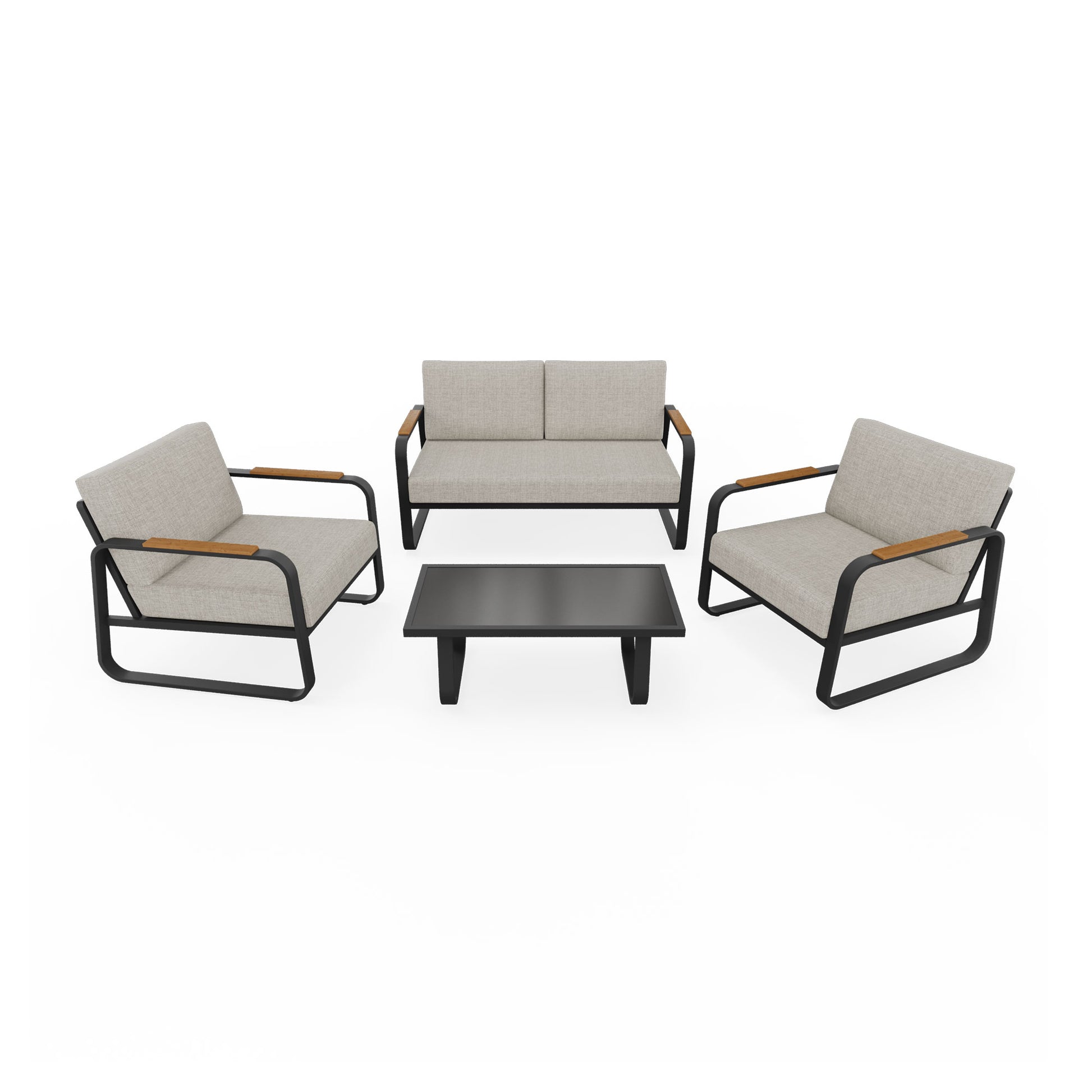 The Alexander 4-Piece Outdoor Loveseat Set offers a spacious, luxurious way to elevate your outdoor living space.
