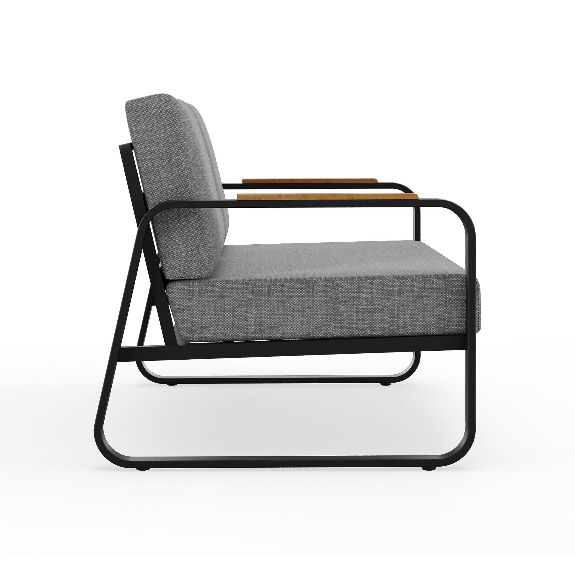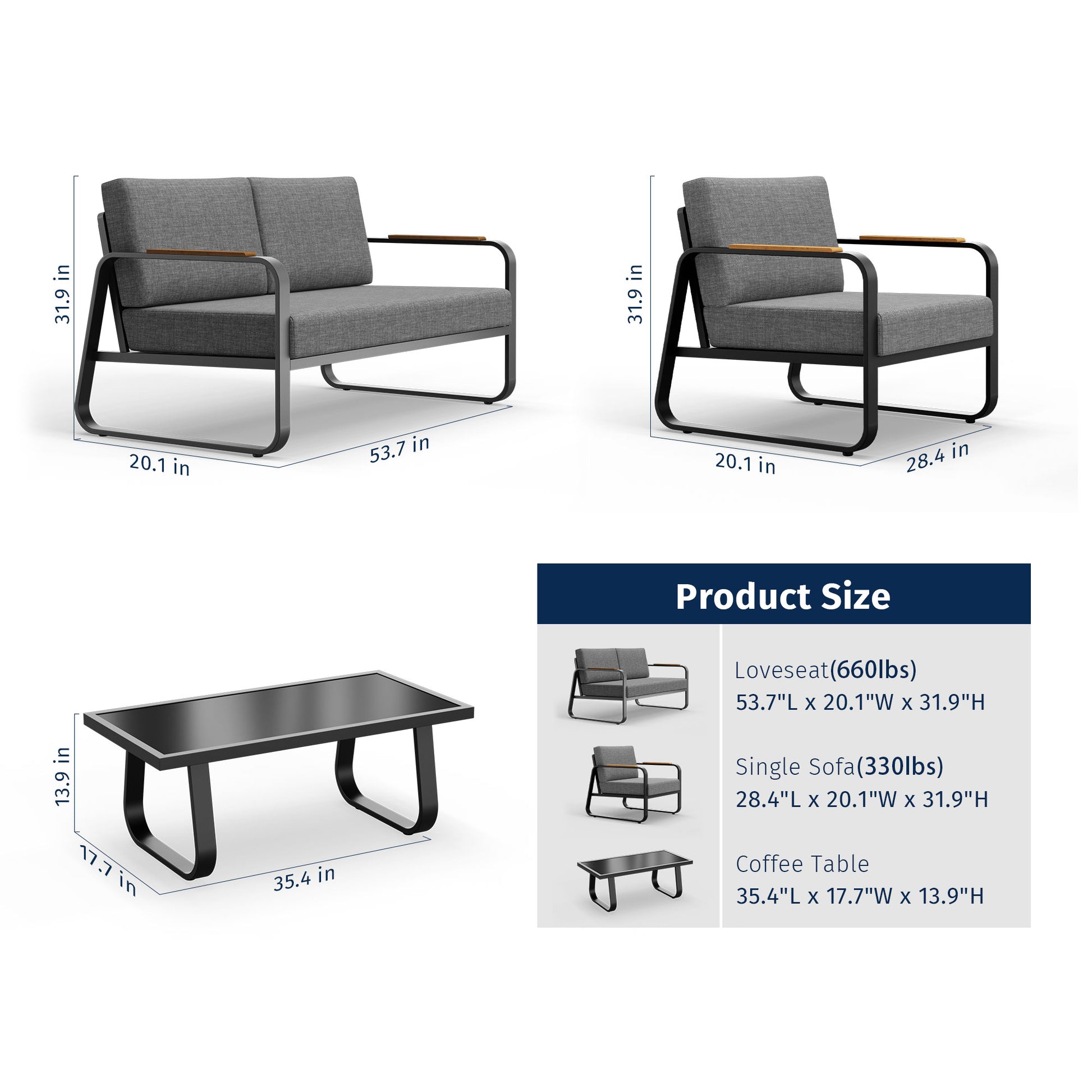 Exclusively designed and patented. The synthetic wood panels on the armrests complement its modern minimalist style. This furniture set would be a dashing addition to any courtyard, backyard, garden, or pool setting
