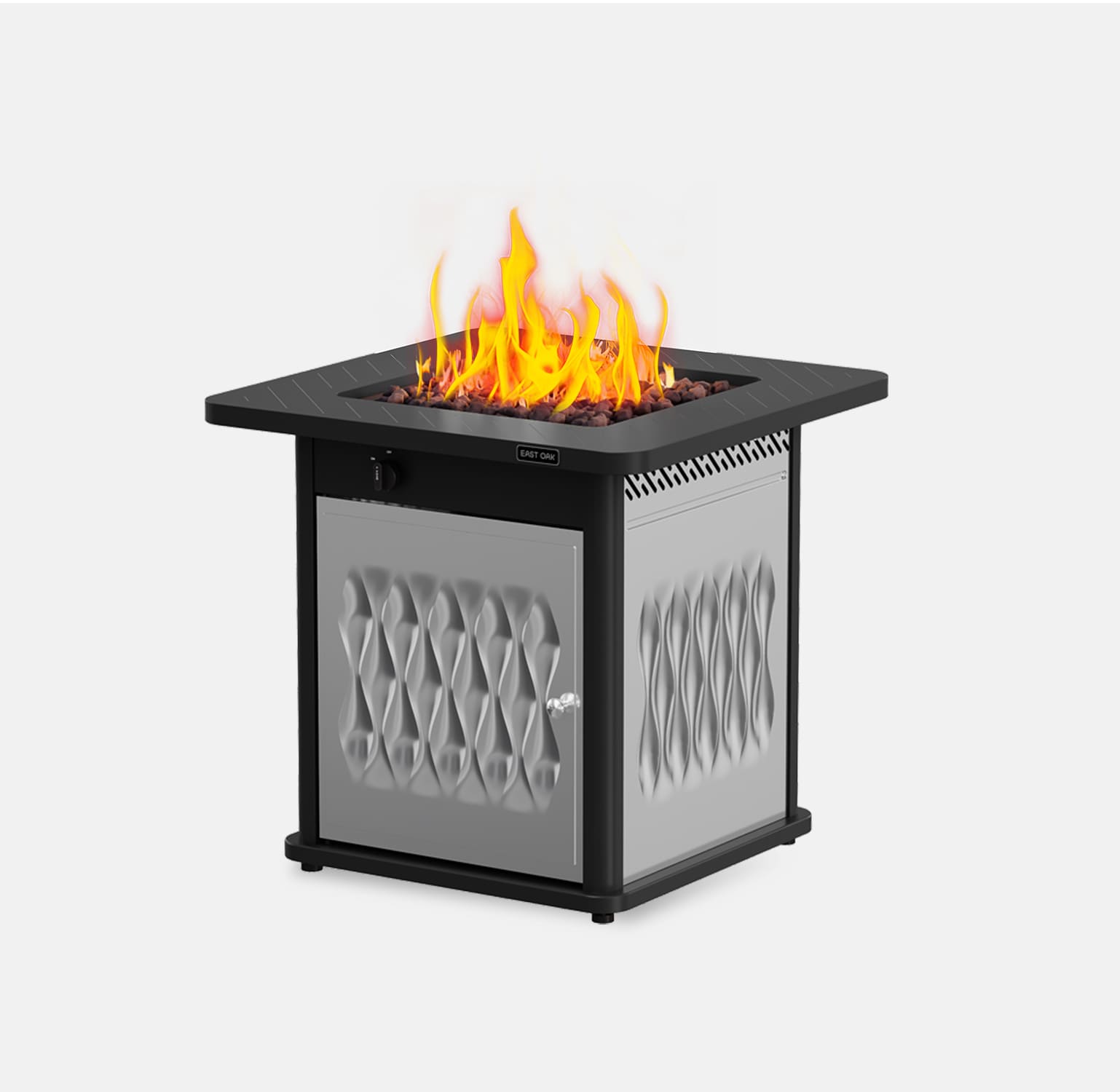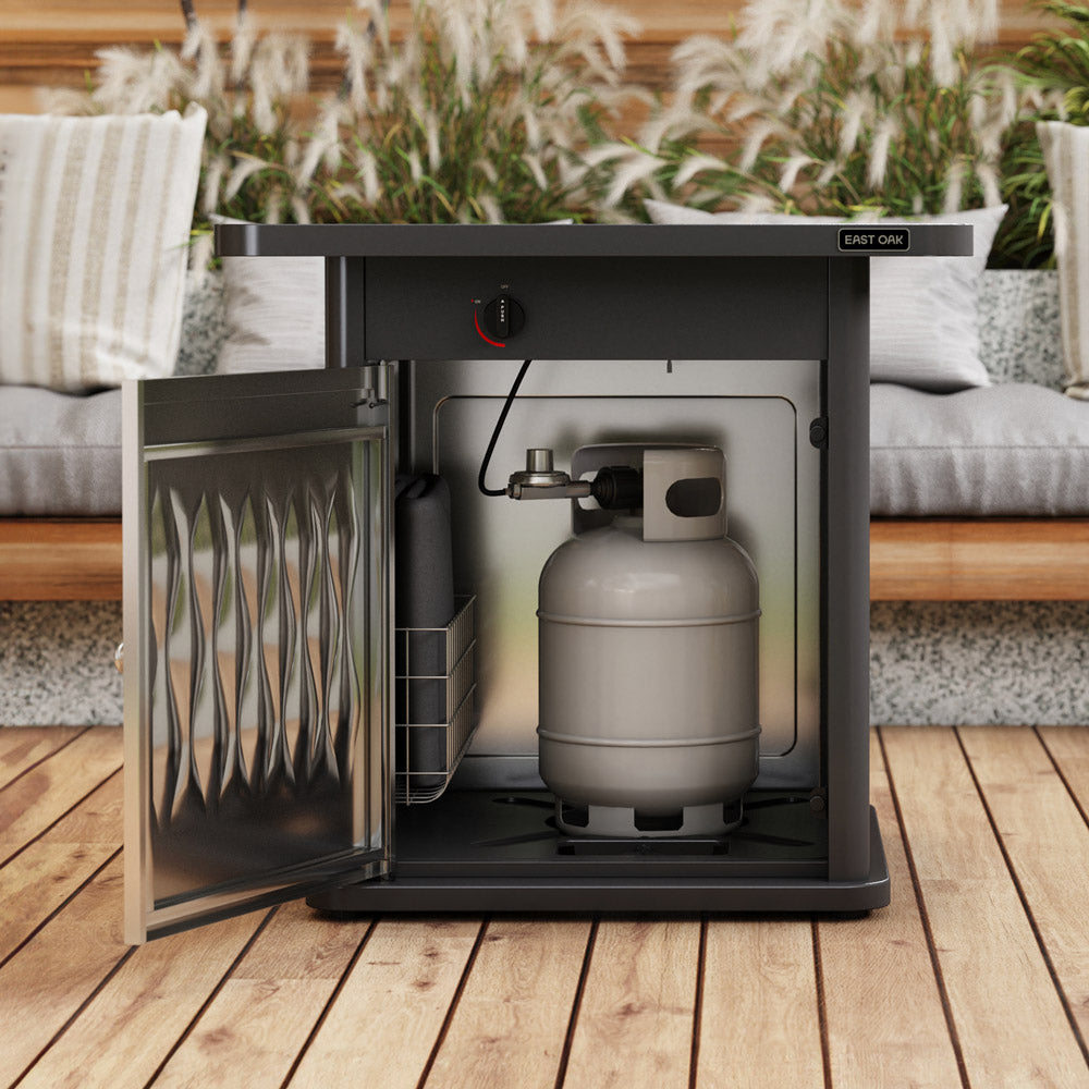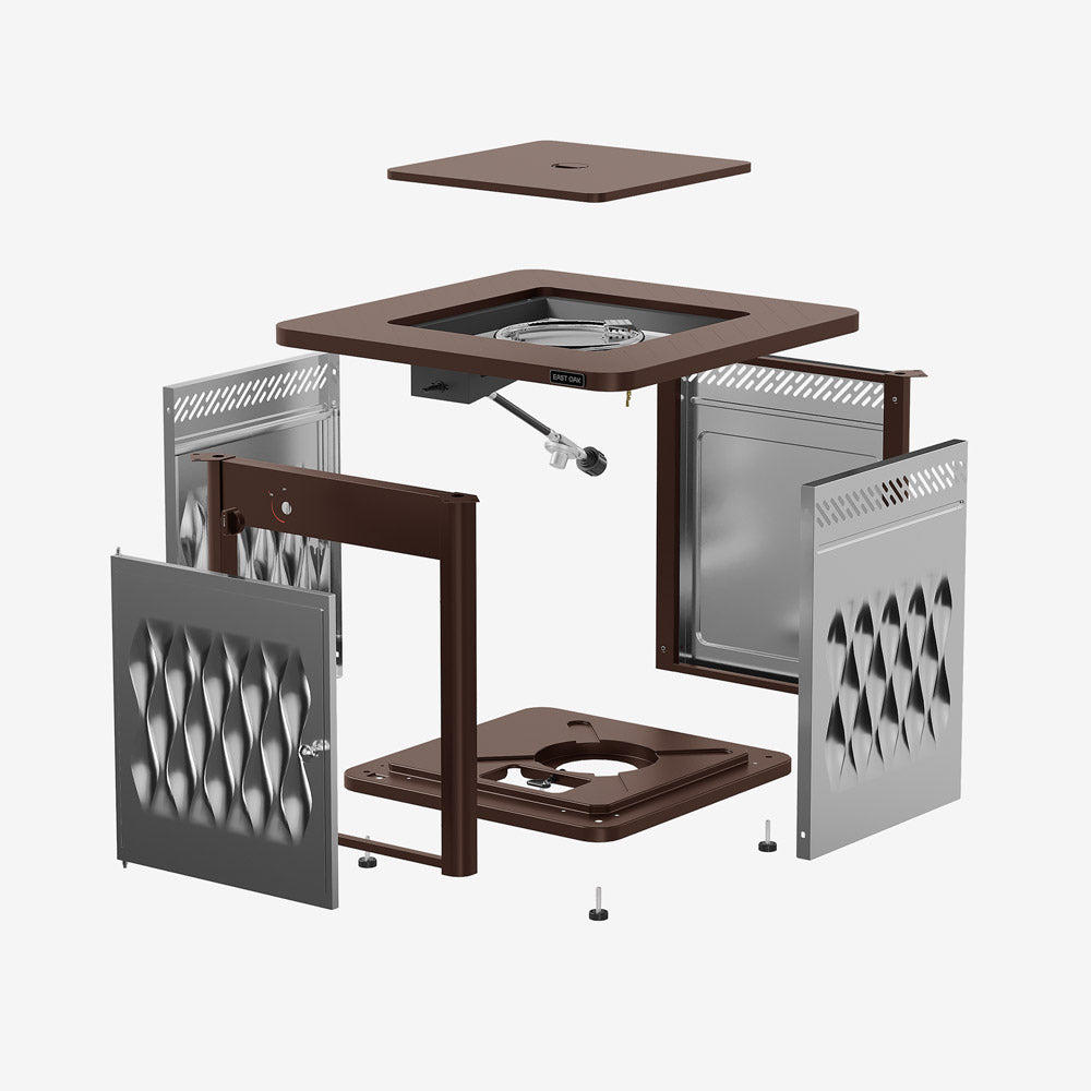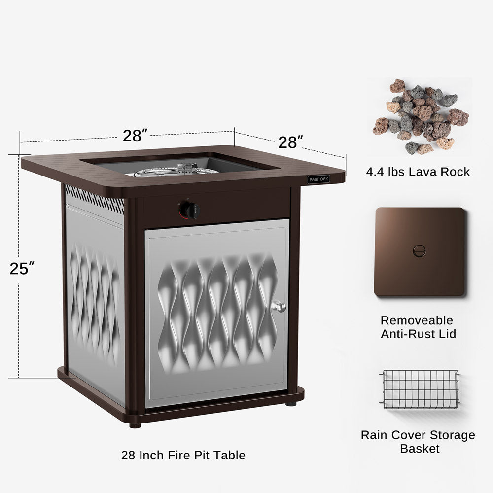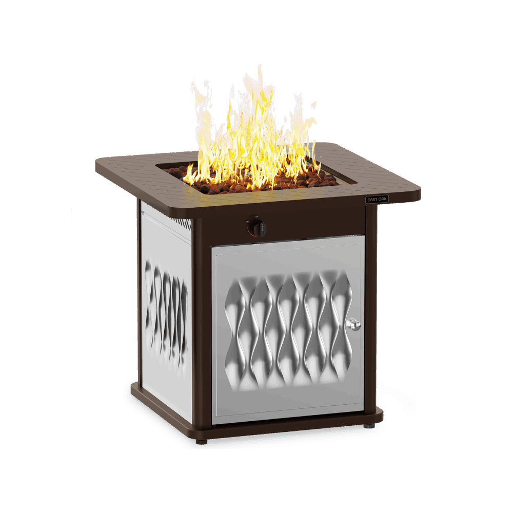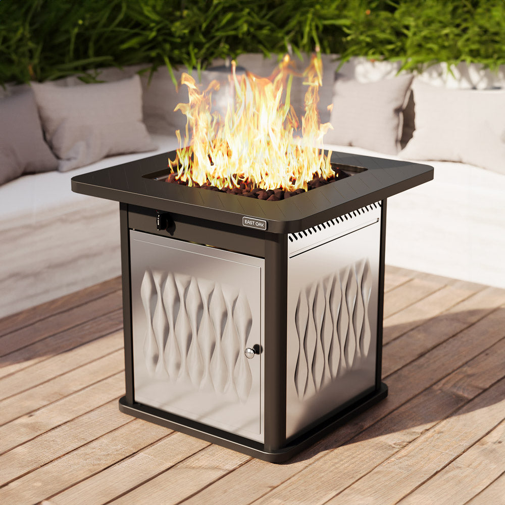 The East oak stainless steel fire table,table frame is made of high-quality pure iron, and the table body is made of stainless steel material, durability has been increased again from the 28inch steel fire table. After the rain and wind, all it needs is a simple wipe down to look like new.