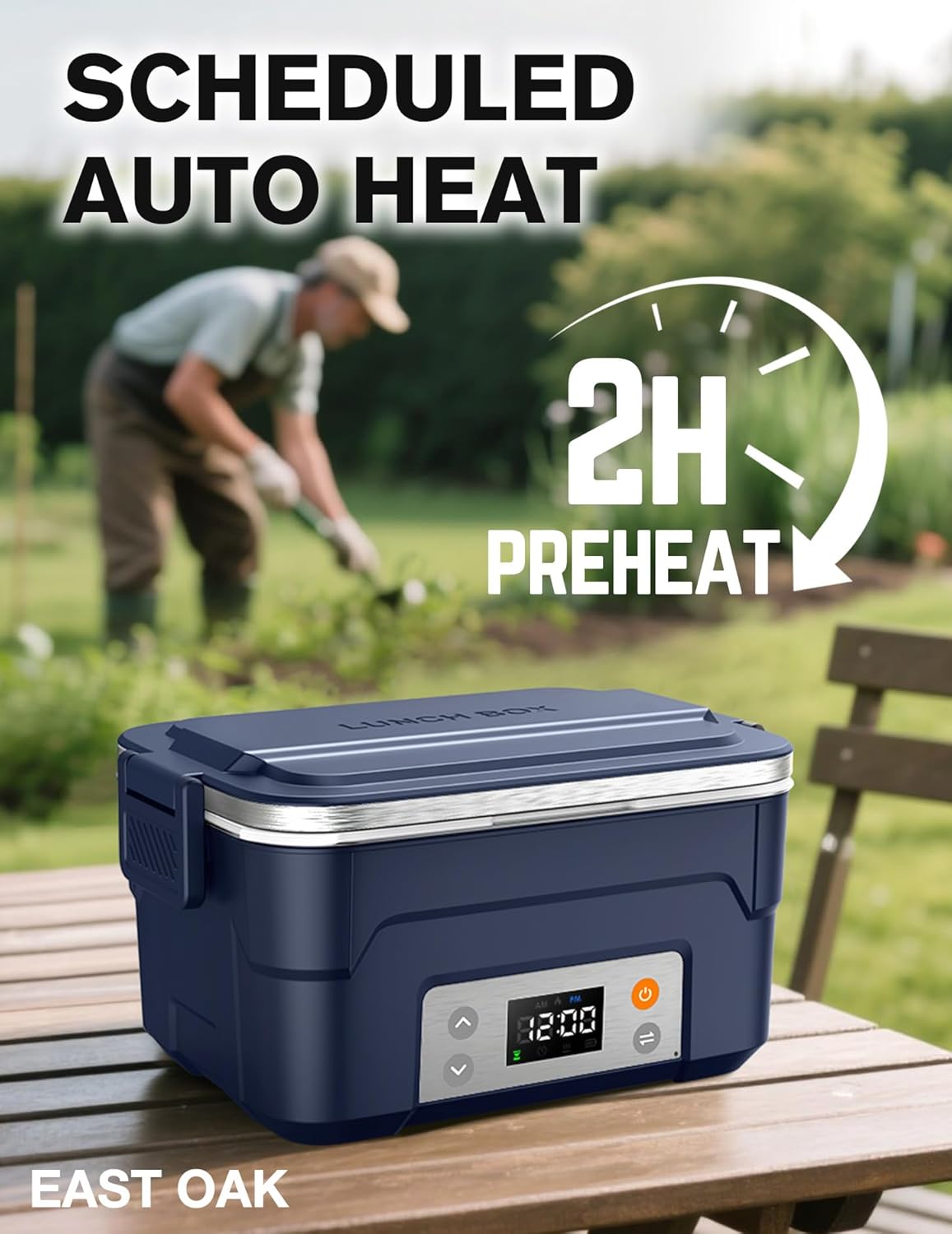 𝐒𝐂𝐇𝐄𝐃𝐔𝐋𝐄𝐃 𝐇𝐄𝐀𝐓𝐈𝐍𝐆 | Simply tell EAST OAK portable lunch box warmer when you'd like to eat, and it will automatically start warming your food in advance, ensuring it's hot and ready right on time