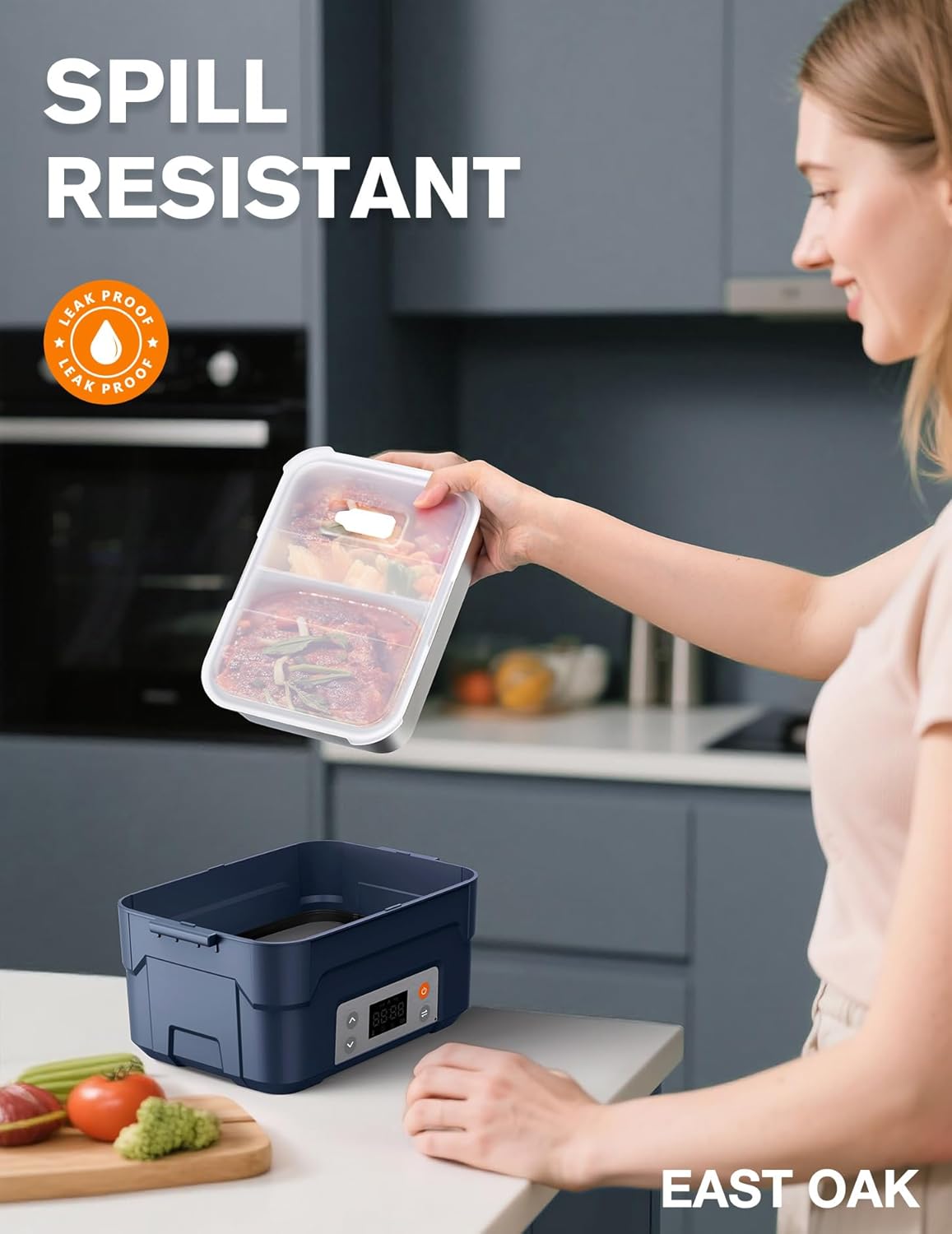 𝐋𝐄𝐀𝐊-𝐏𝐑𝐎𝐎𝐅 𝐃𝐄𝐒𝐈𝐆𝐍 | EAST OAK electric lunch box for men features a silicone-sealed lid that passes shake tests, ensuring a secure closure that prevents leaks. Carry with peace of mind—meals stay contained