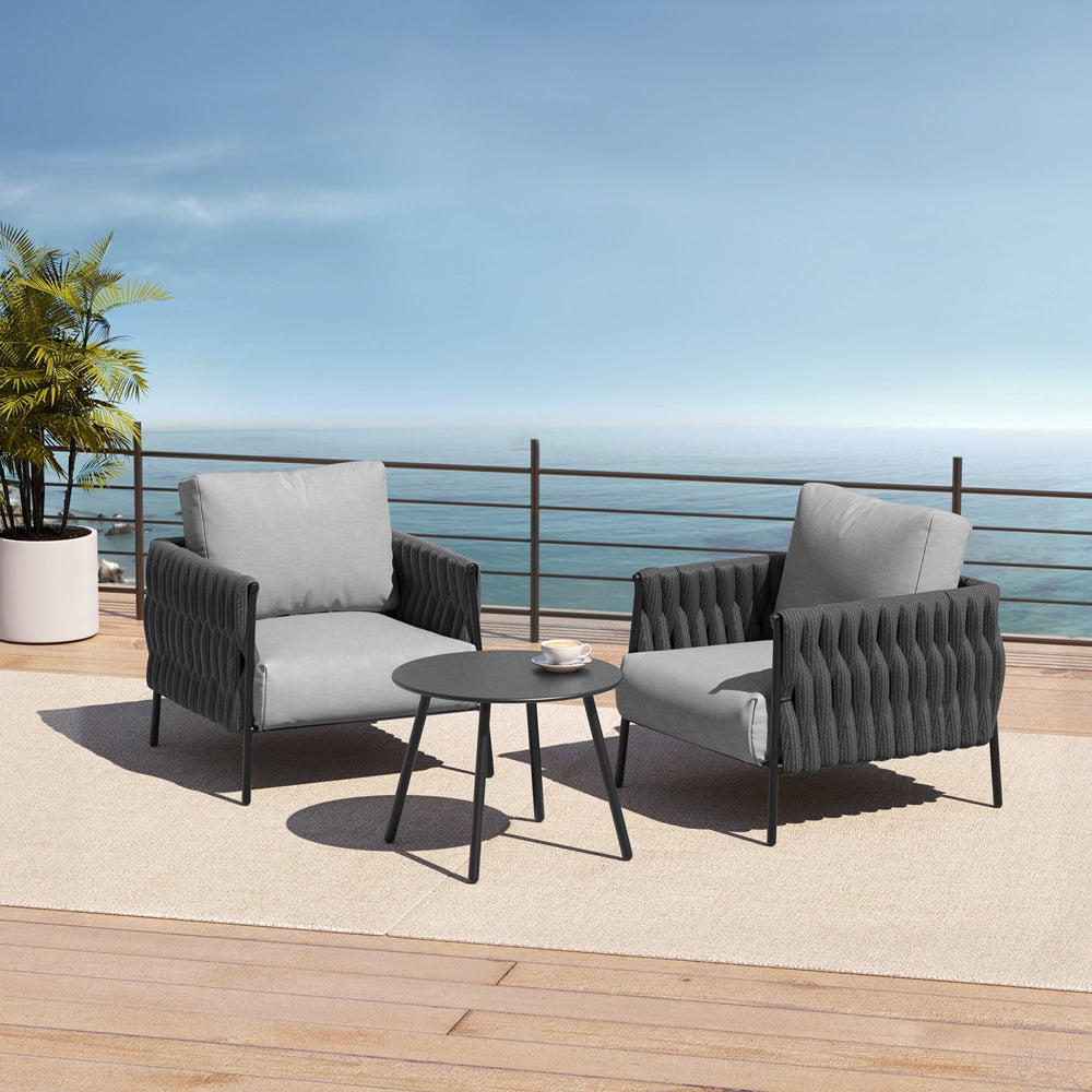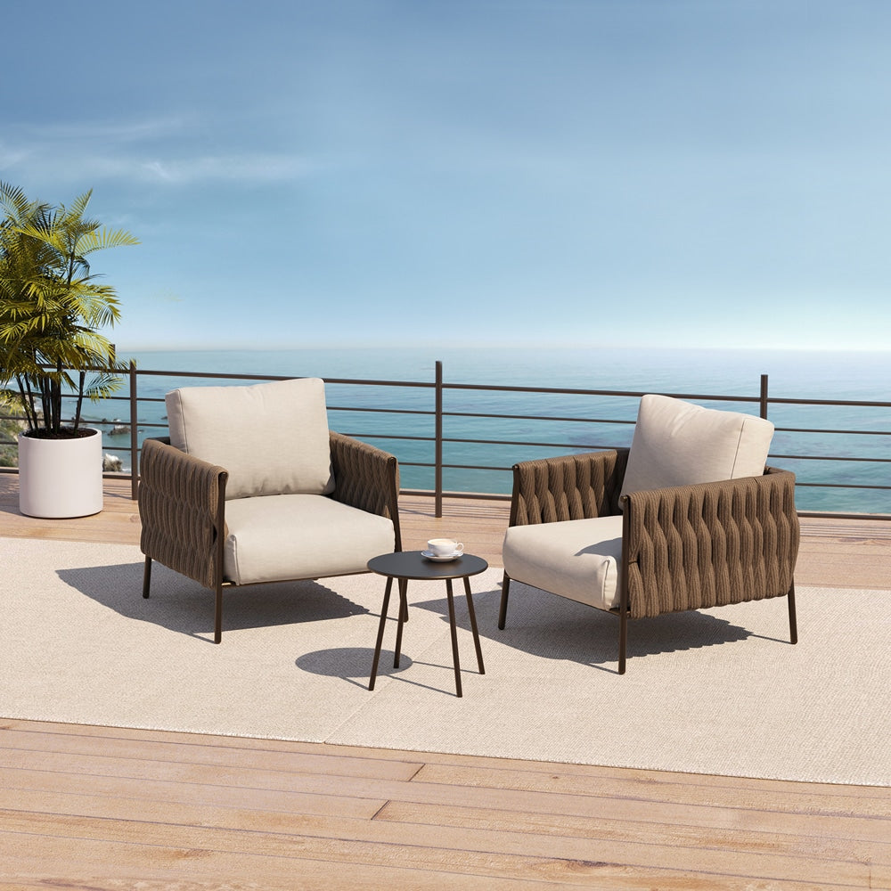 The East Oak Life Chatter 3-Piece patio conversation furniture set is a stylish and comfortable patio furniture set perfect for any outdoor space. This patio conversation set is designed to enhance your outdoor seating experience, providing both comfort and durability with its high-quality materials and design.