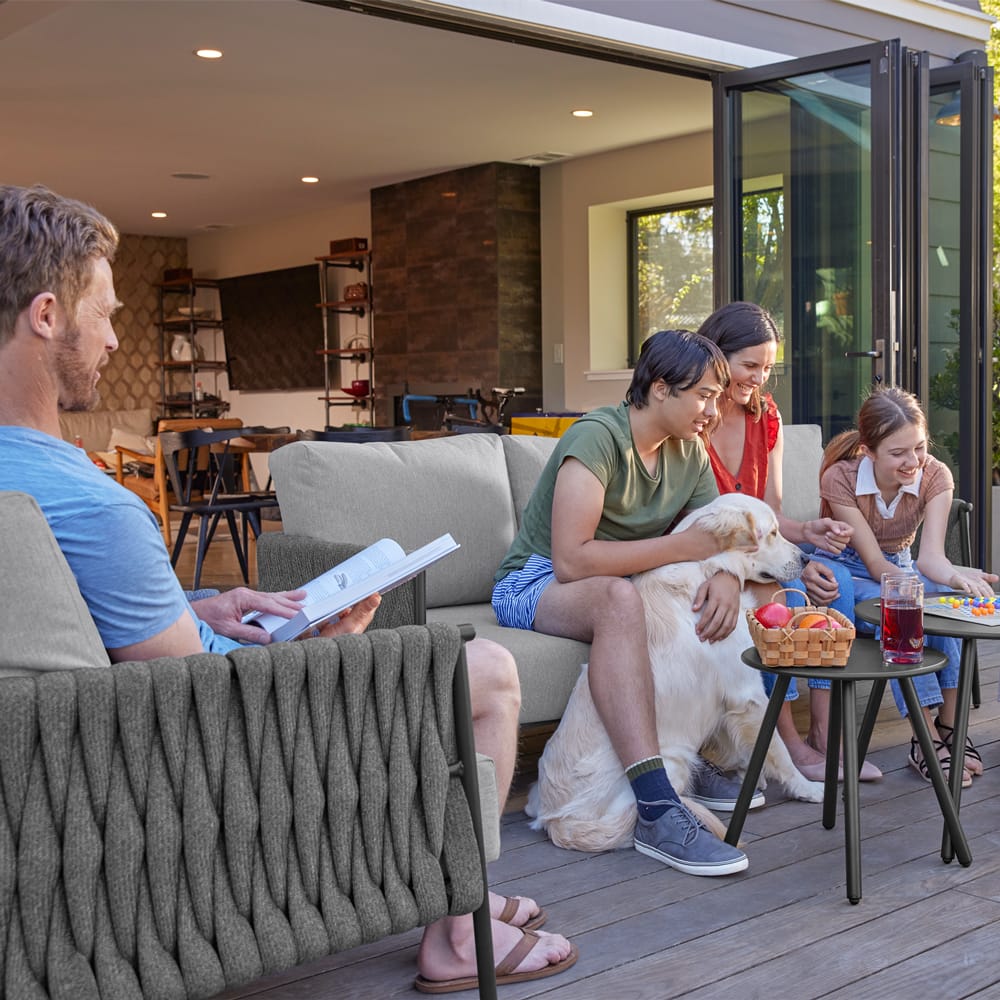 The East Oak Life Chatter 5-Seat Outdoor Couch Set offers a spacious, luxurious way to elevate your outdoor living space.