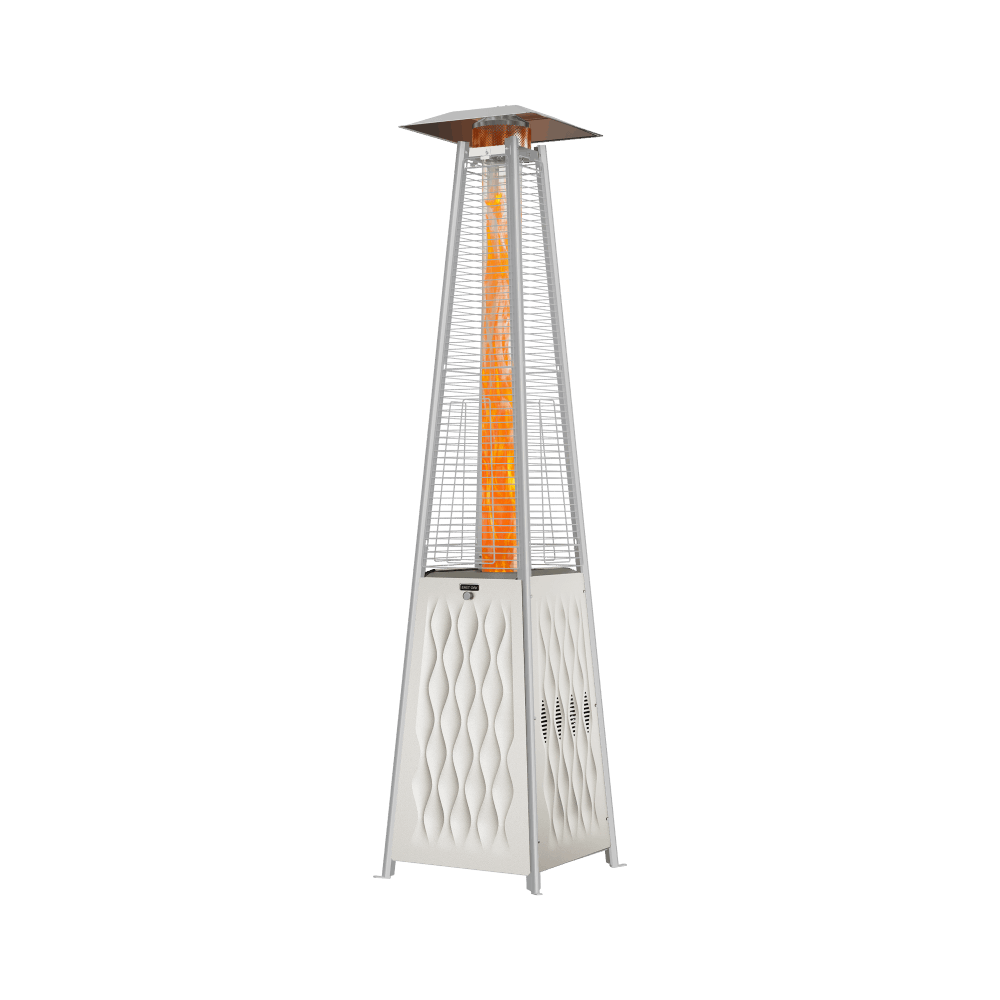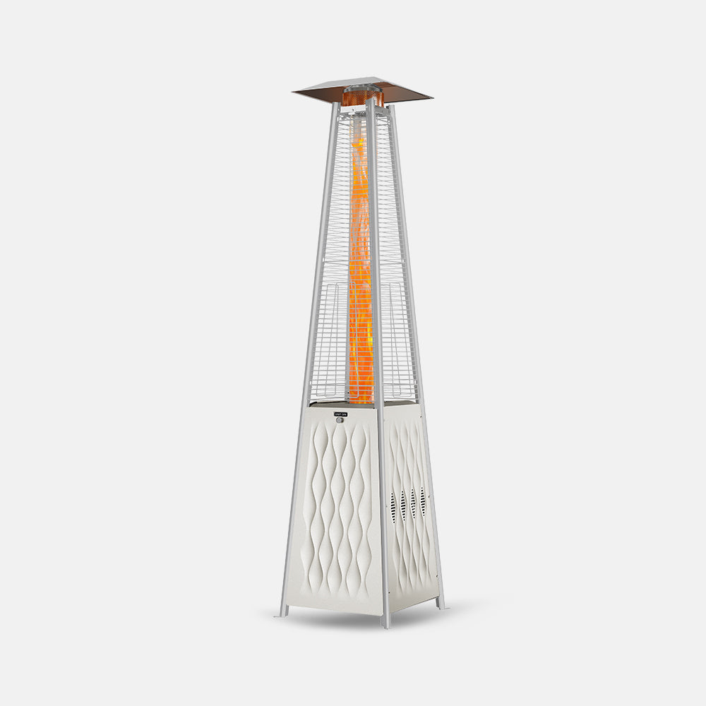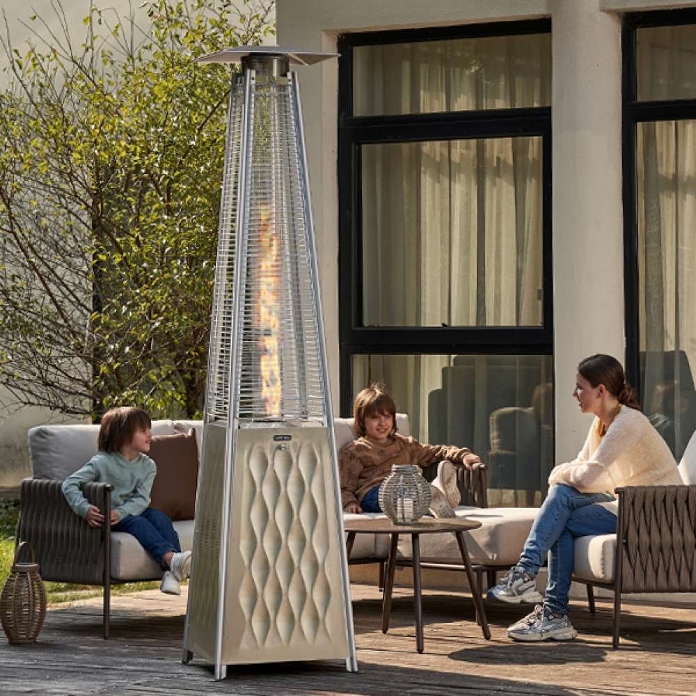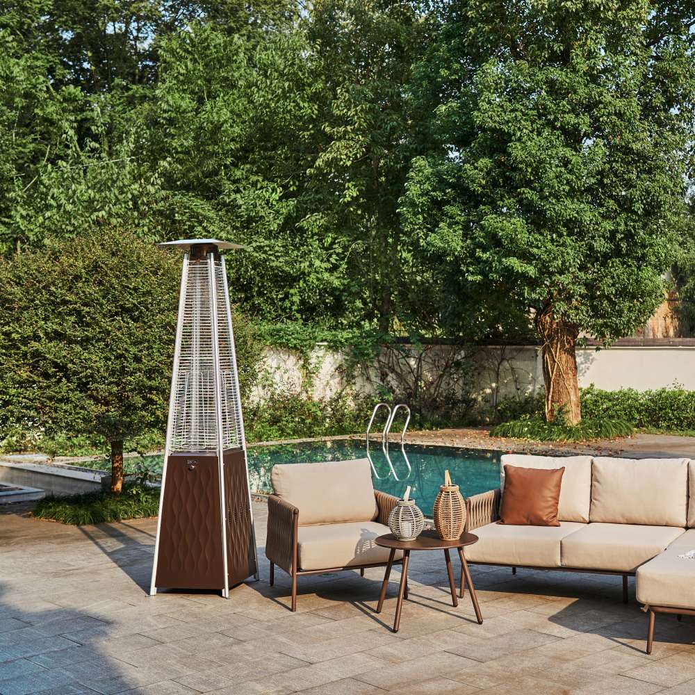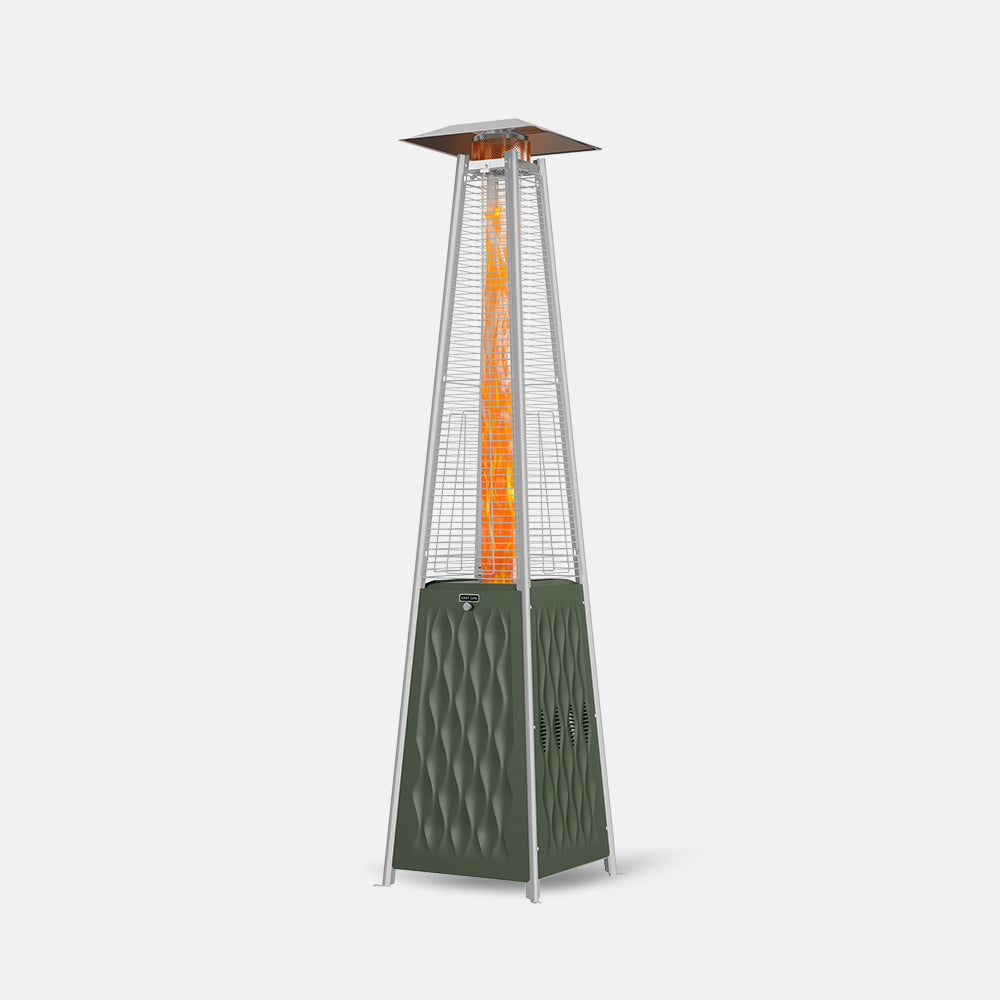 East Oak Pyramid Patio Heater, 48,000 BTU outdoor heater with quartz glass tube, perfect for commercial & residential use. Includes wheels for easy mobility.