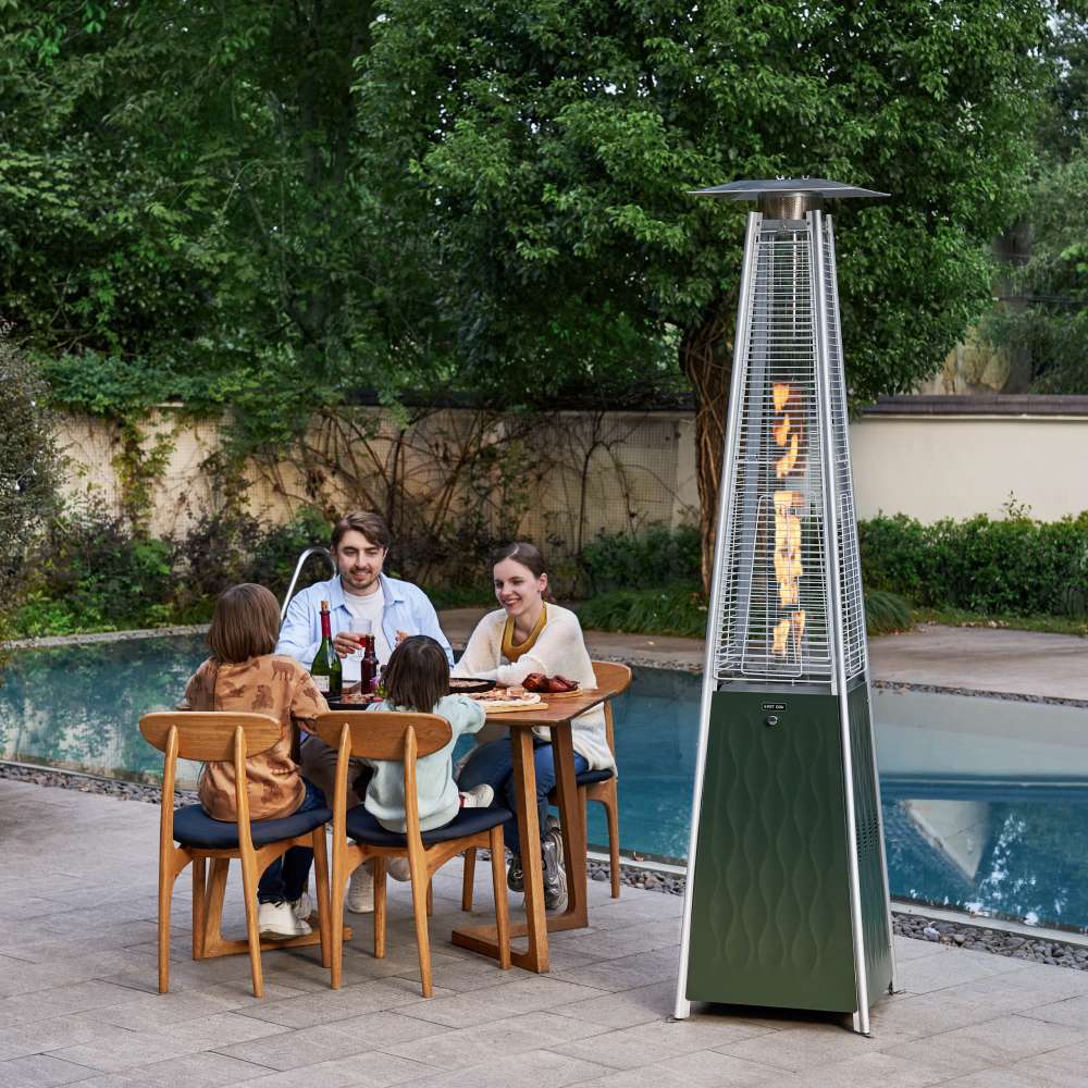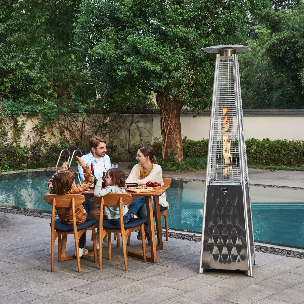 The East Oak Patio Heater offers an impressive 18-foot heat radius, warming large outdoor spaces with ease from patios, gardens to commercial settings.