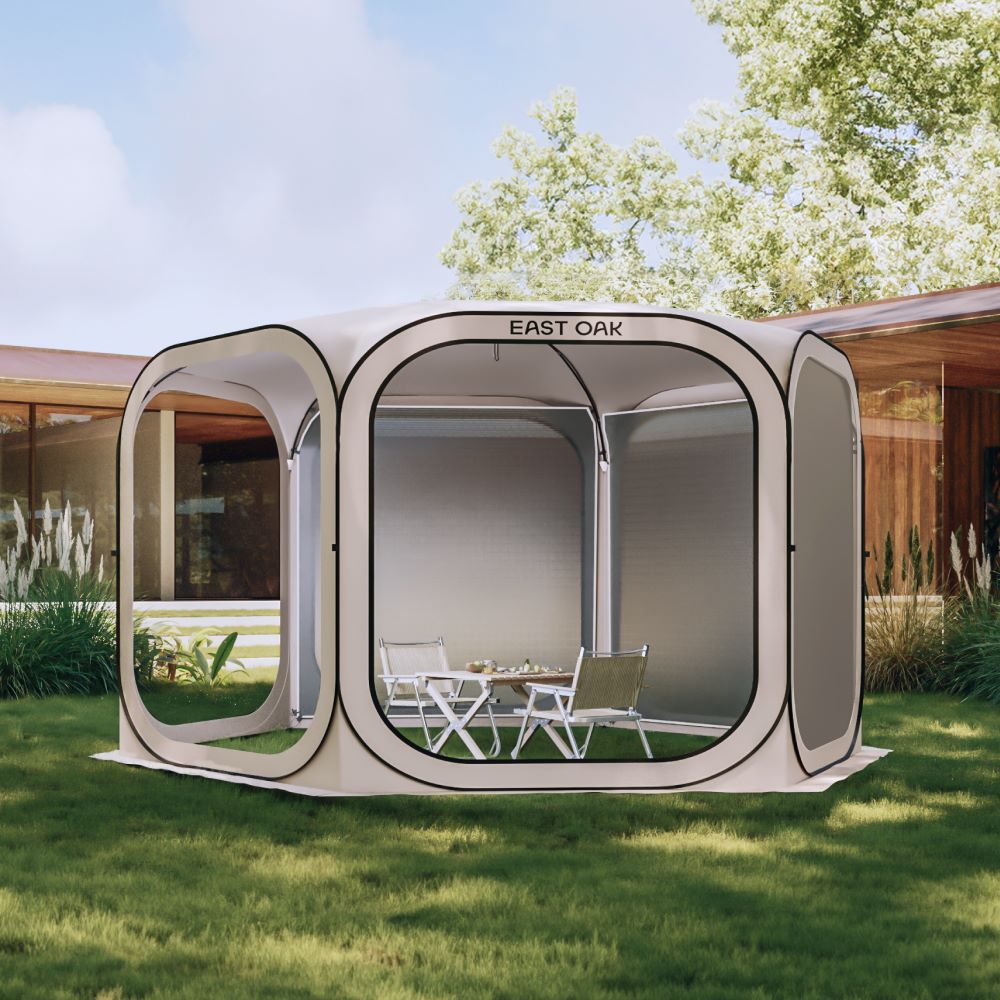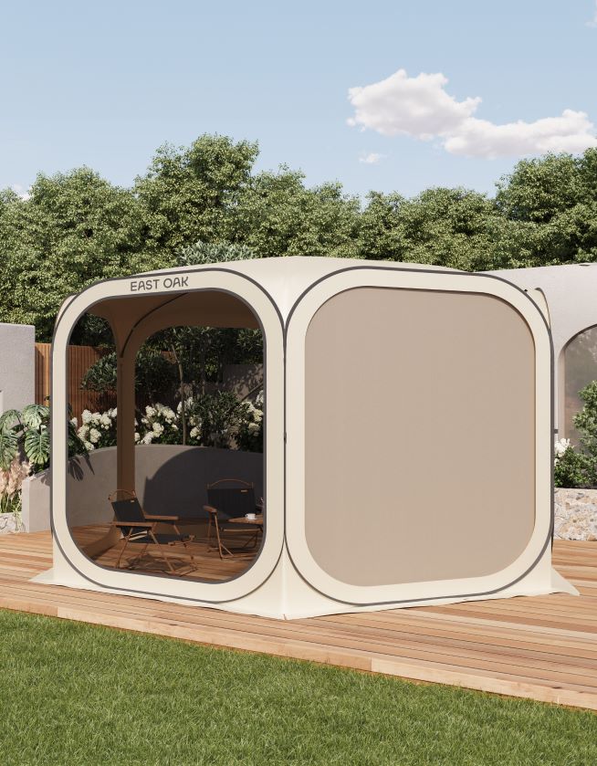 Rectangular shade sails with UPF 50+ silver-coated Oxford fabric, blocking harmful UV rays to prevent sunburn. Designed exclusively for East Oak screen houses.