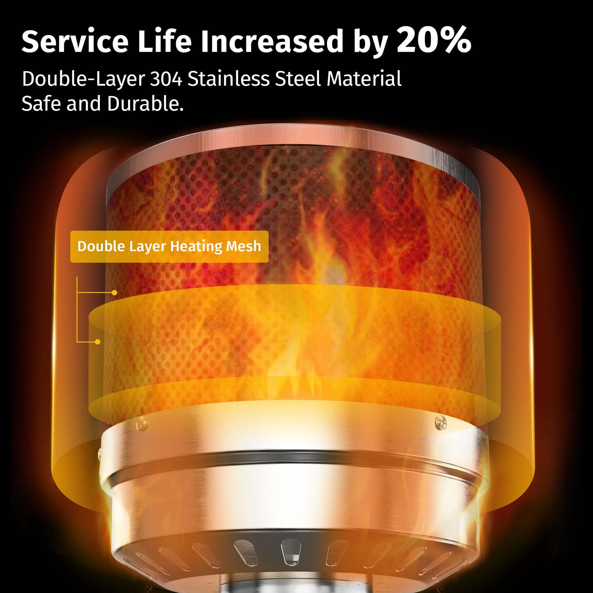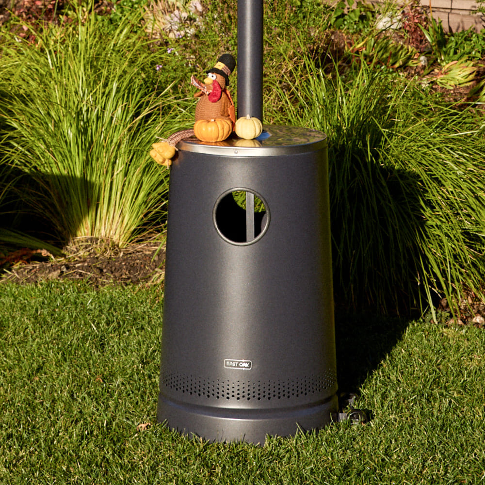 With 50,000 BTUs of power, the East Oak Patio Heater warms outdoor spaces up to a 20-foot radius. Its durable double-layer stainless steel mesh ensures steady, reliable heat for any patio or garden.
