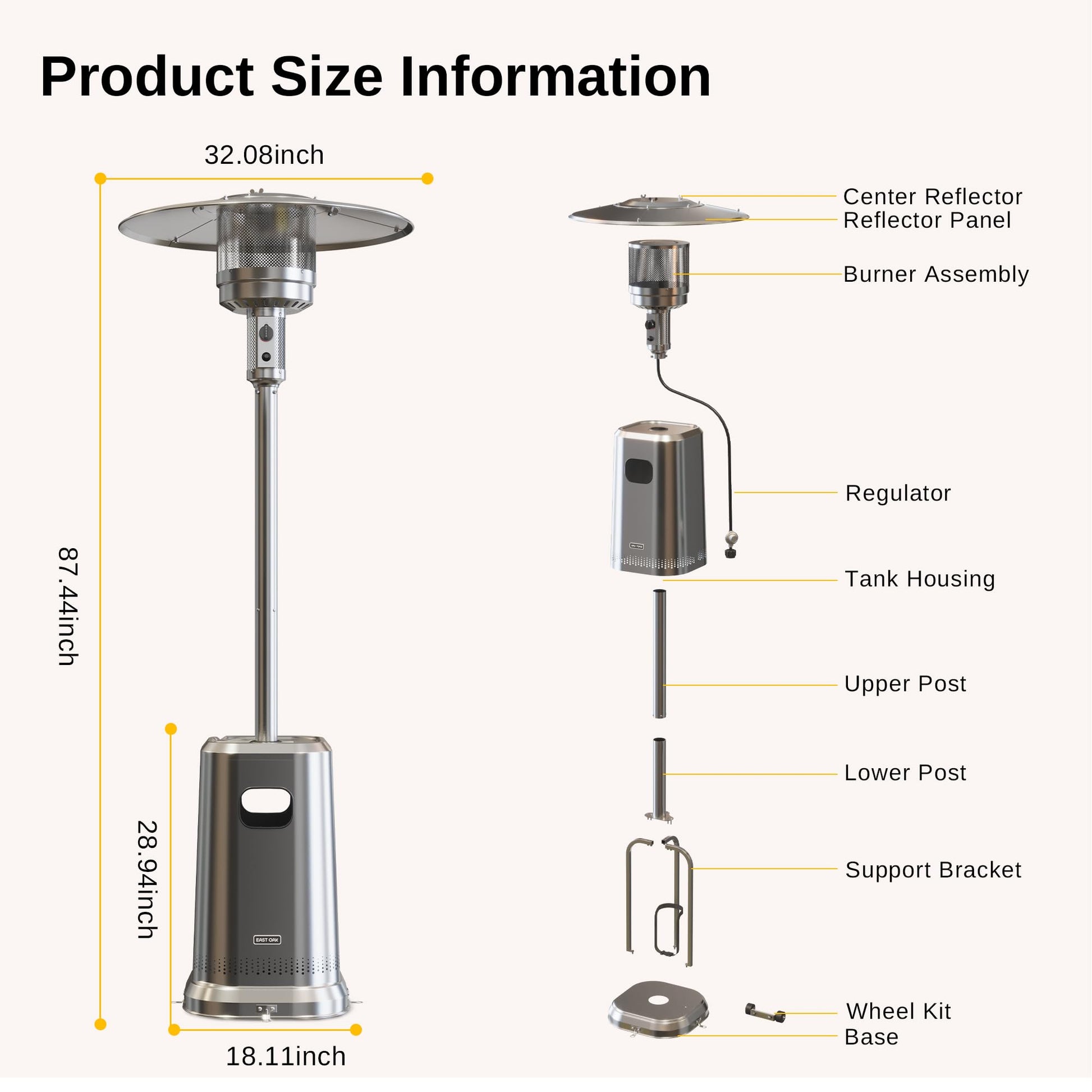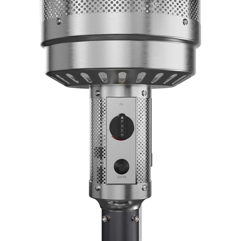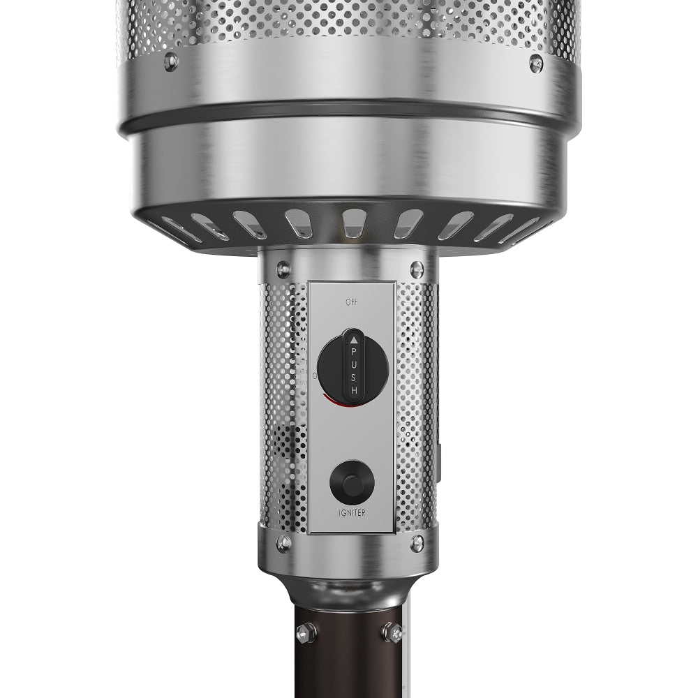 East Oak 50,000 BTU Propane Patio Heaters with Cone Table. Up to 20-foot diameter heat range. Perfect for patios, yards, restaurants, and bars. Pair with a free sand box for excellent stability.