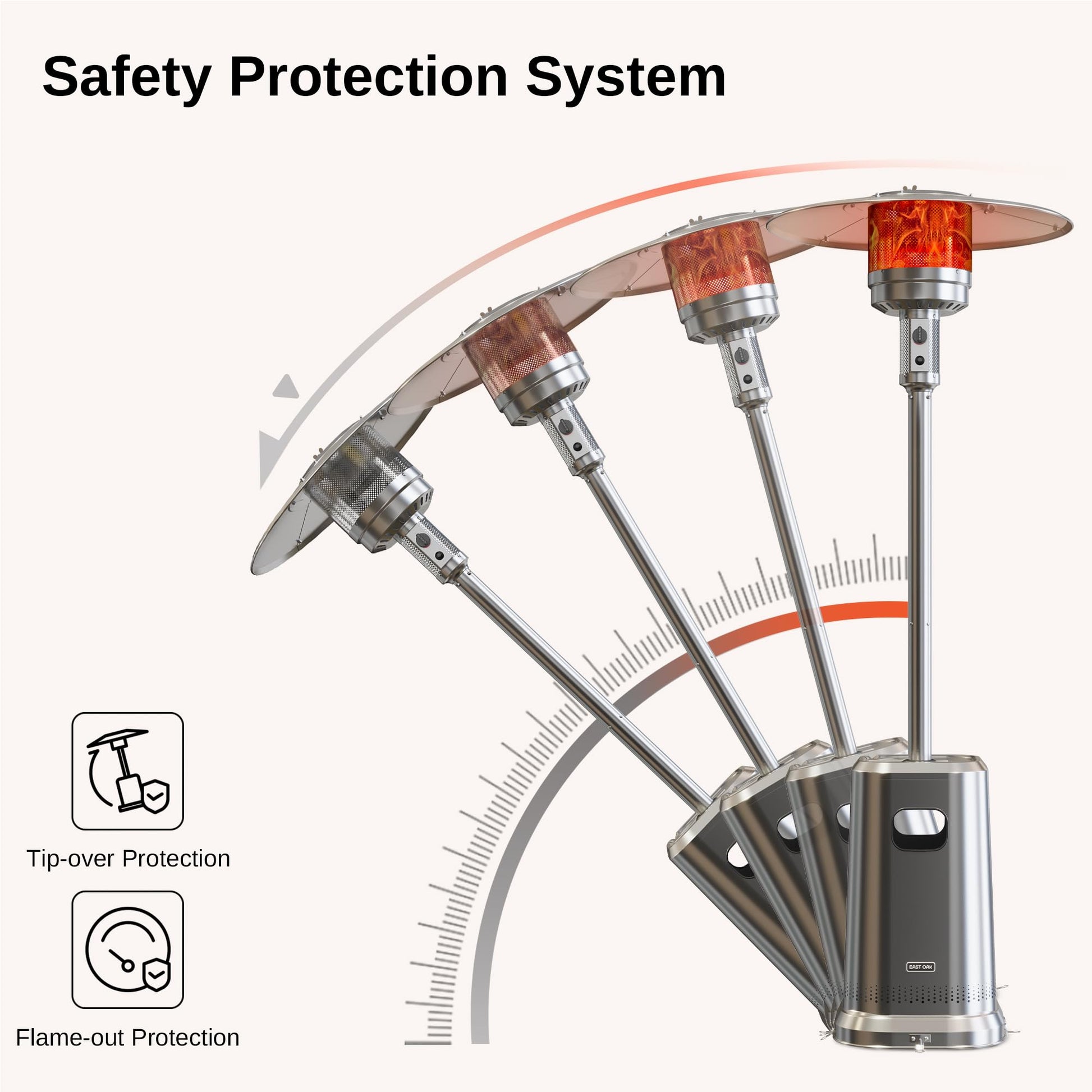 The East Oak Patio Heater is designed for ease and peace of mind. With Triple Safety Protection, you can enjoy worry-free warmth, while its fast ignition and simple controls make it effortless to use.