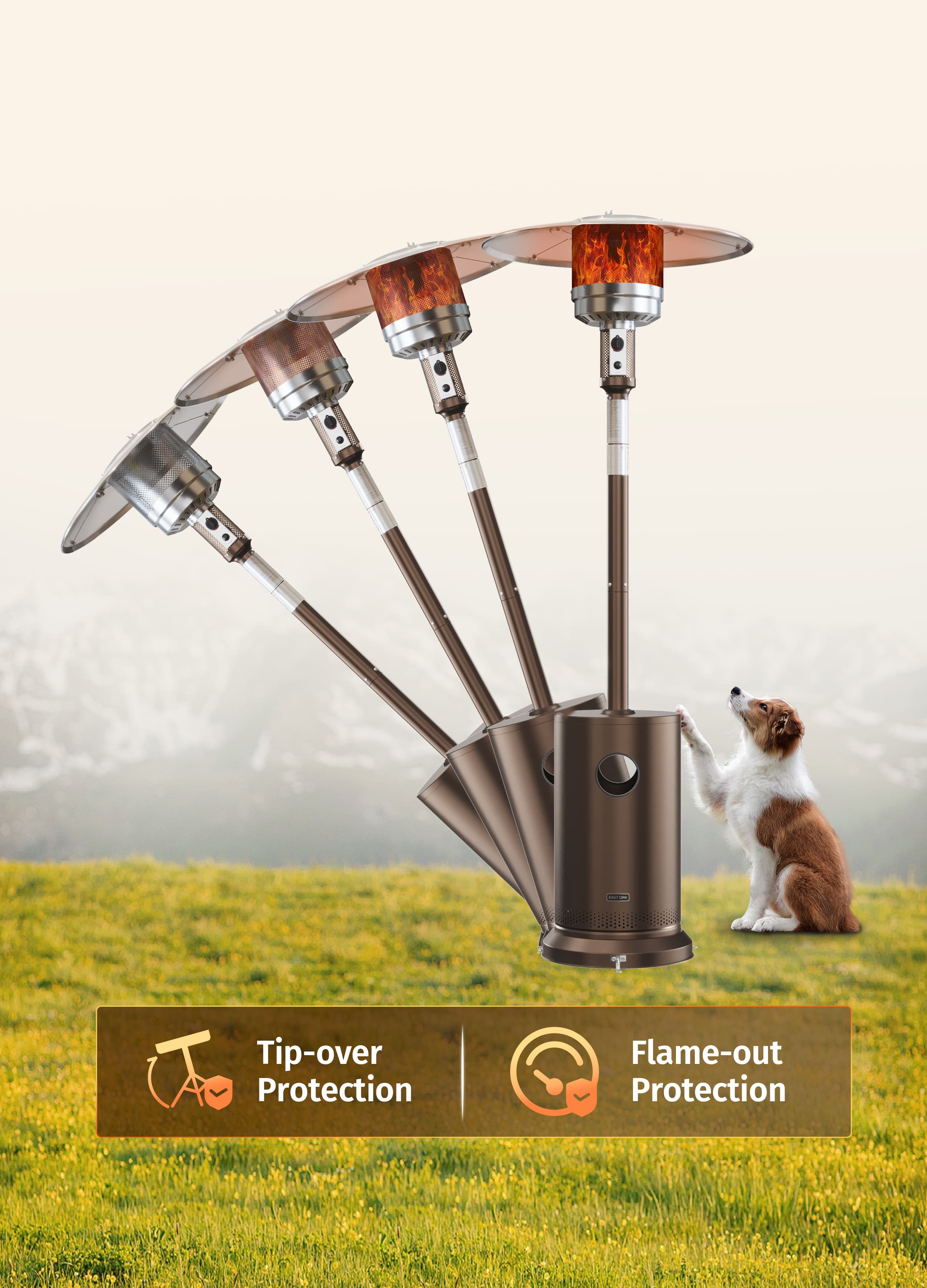 The East Oak Patio Heater is designed for ease and peace of mind. With Triple Safety Protection, you can enjoy worry-free warmth, while its fast ignition and simple controls make it effortless to use.